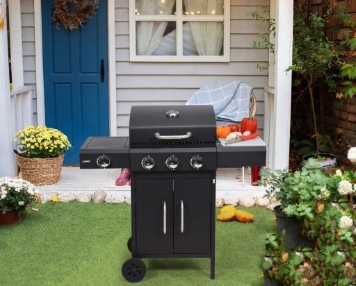 ✅ Дополнительные функции: колеса, не -выживающая ручка, боковая горелка, жирный контейнер, крышка, шельф, шкаф, термометр