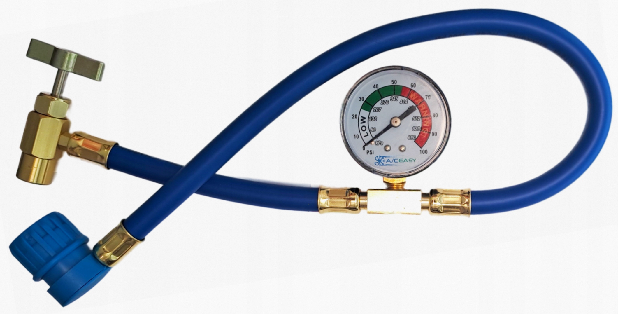 Чтобы Хладагент из баллона может всасываться необходимо подключить комплект на стороне низкого давления системы кондиционирования воздуха. В системе есть два сервисных порта высокого и низкого давления только на стороне низкого давления, поэтому мы используем хладагент из баллона. не нужно переживать, что мы подключим комплект не к той розетке и рискуем получить ситуацию, когда хладагент из системы кондиционирования будет перекачан в баллончик.
