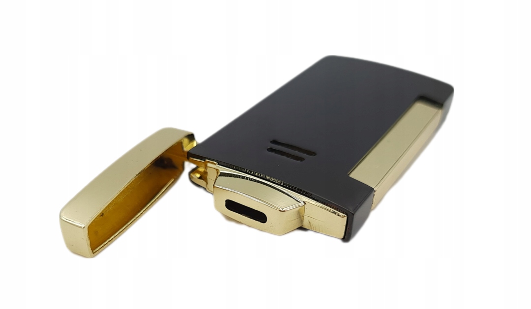 Предложение применяется к газу зажигалка. Это металл. Имеет реактивный пламя. У него есть клапан для нескольких начинков. Высота пламени регулируется. Это идеально подходит для подарка. Зажигалка помещается в элегантную коробку с хорошей подкладкой. Его размеры - 7x3,5x0,9 см.