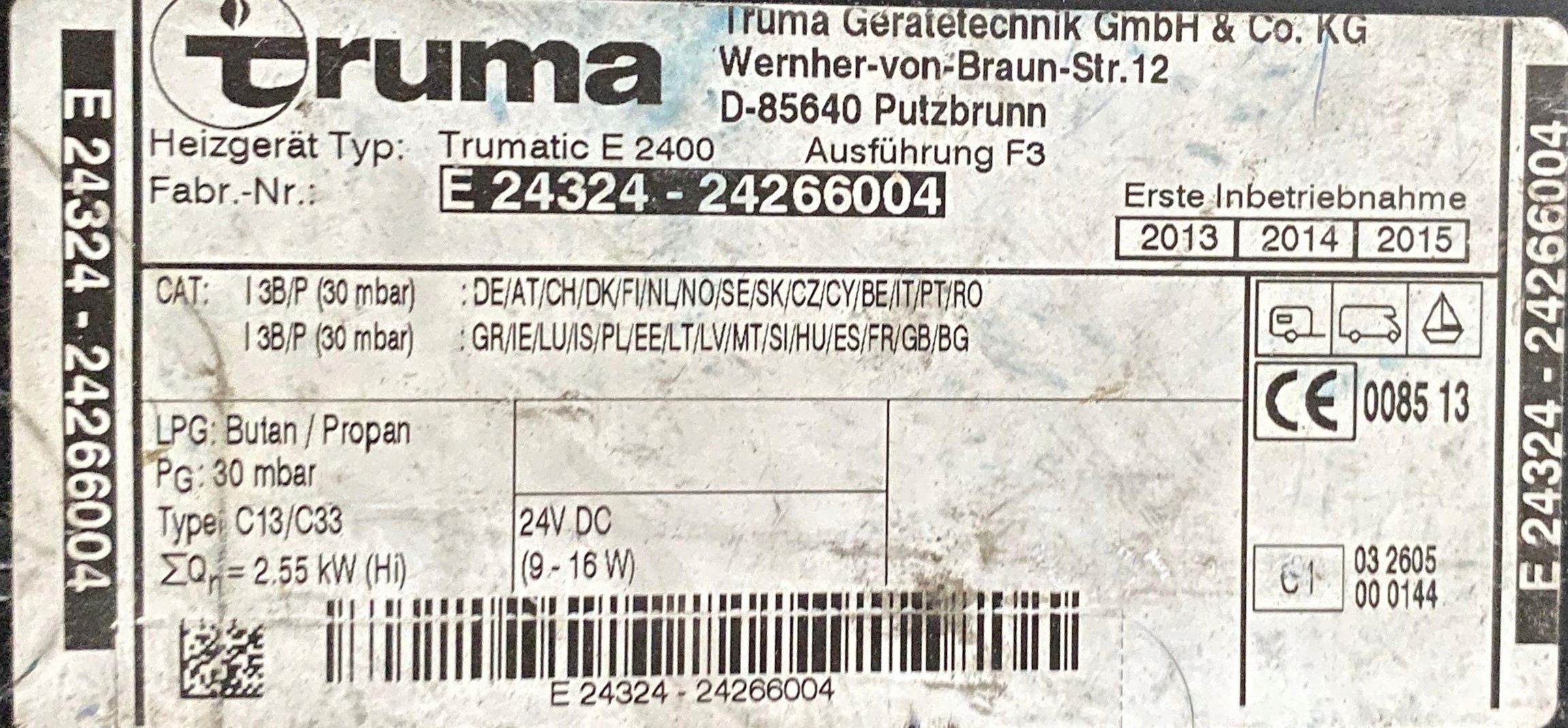Gas Webasto Truma Traumatic E2400 E24324-24266004