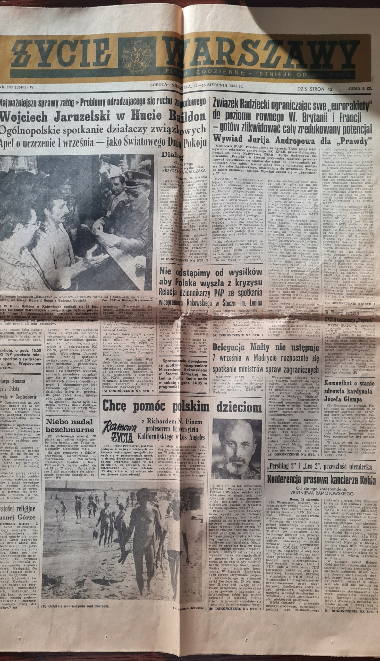 ГАЗЕТА ЖИТТЯ ВАРШАВ 27 - 28 СЕРПНЯ 1983 РОКУ