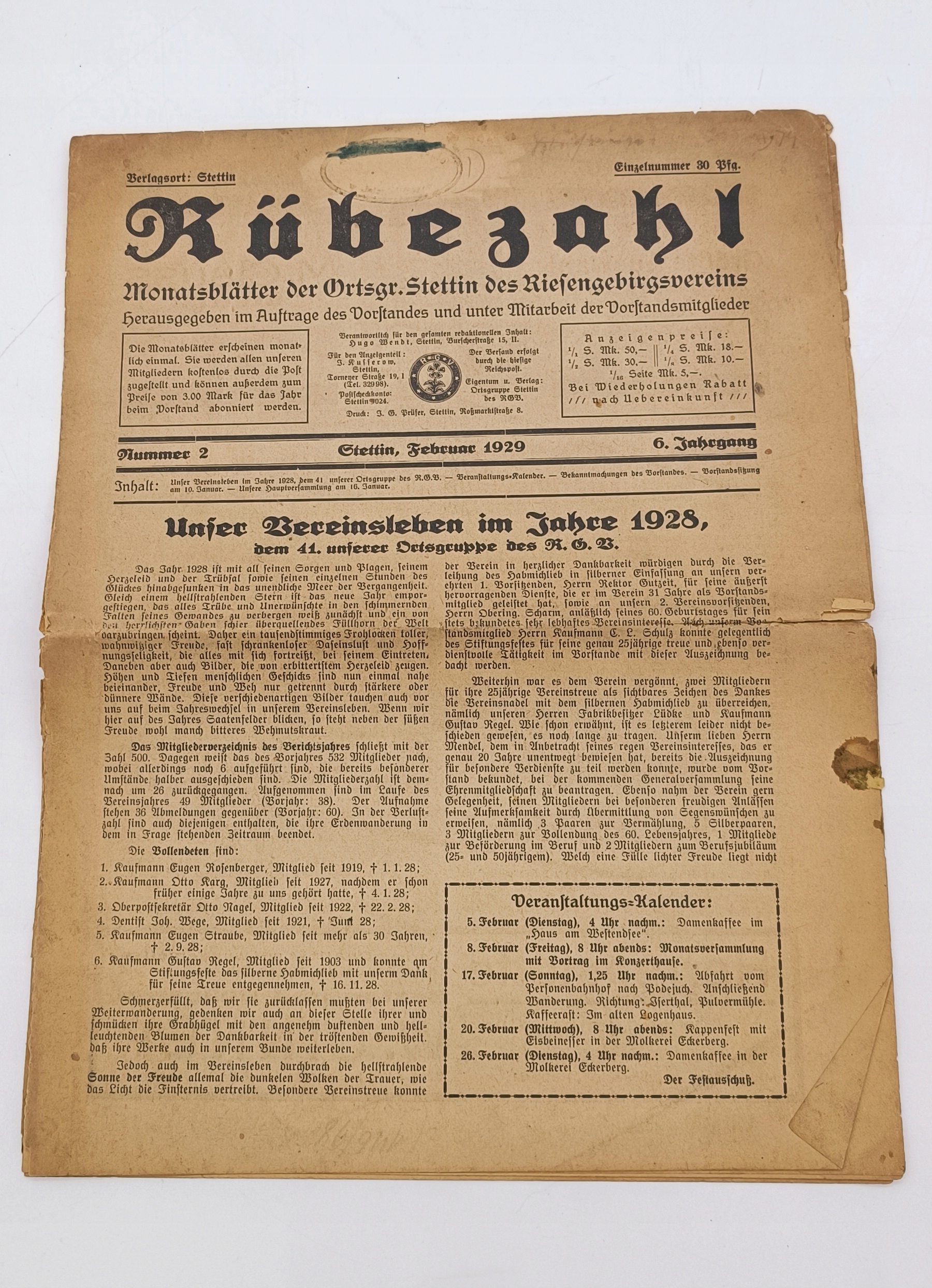 Gazeta Rubezahl - Stettin - Riesengebirge - Karkonosze 1929 r.