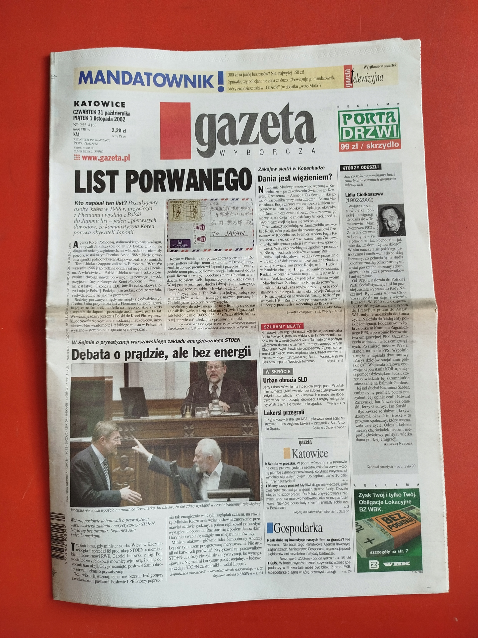 Gazeta Wyborcza, 31 października - 1 listopada 2002, nr 255 Stachursky