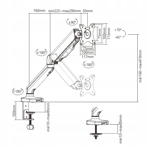 - Встроенный пружинный механизм натяжения: для идеальной регулировки монитора.