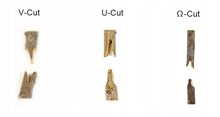 ➡️ Поместите материал для прививки в секатор и сожмите ручку, чтобы сделать разрез. Этот шаг следует повторить, чтобы отрезать стебель от растения-донора. Затем проверьте, хорошо ли прорезана канавка материнского растения.