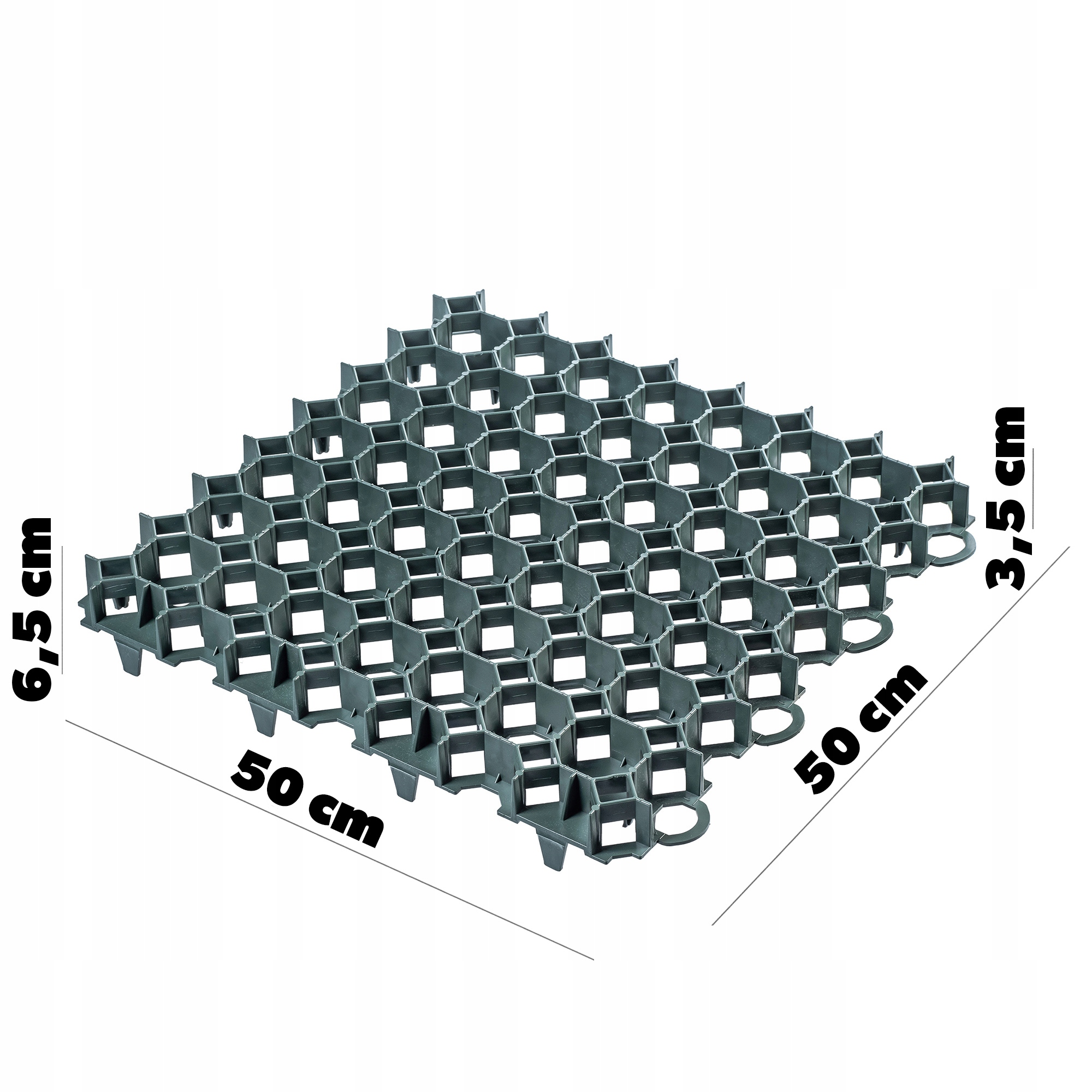 Изготовленная из 100% переработанных материалов, она экологична и безопасна для окружающей среды и почвы. Его прочность — до 1000 тонн на 1 м²: он выдерживает вес припаркованного автомобиля, не опасаясь повреждений, успешно заменяя брусчатку или ажурные бетонные плиты. р>