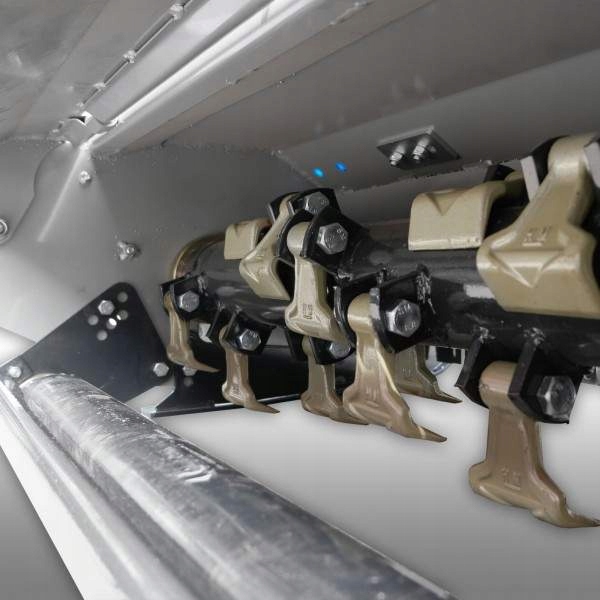 Задняя крышка открывается, благодаря тому, что, когда мы косят высокие травы, можно отменить крышку, чтобы избыточный материал простирался быстрее из рабочей камеры. Это вызывает значительное снижение нагрузки трактора и повышение эффективности работы. Тем не менее, материал, который выпадает с отверстия, все хуже и дольше, чем если бы апертура была постоянно закрыта во время кошения.