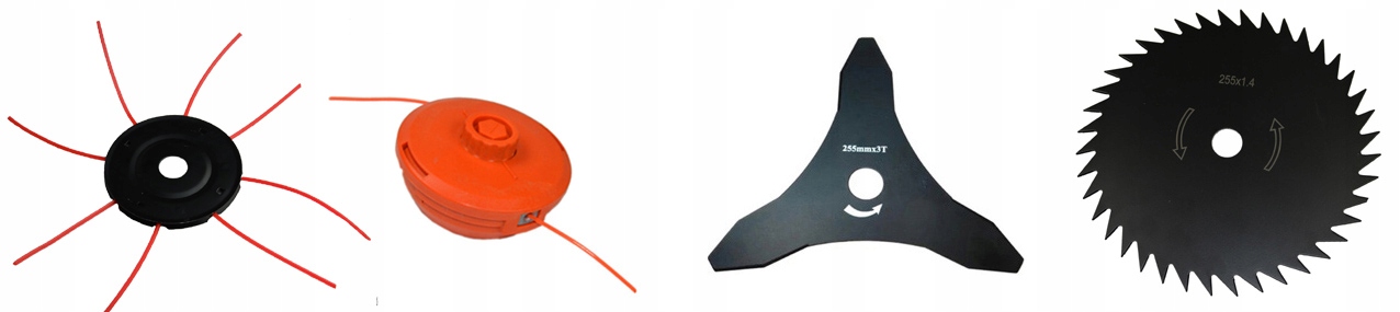 В комплект входит щиток, 3 косилочные головки со шнурком, трезубец для высокой травы и металлический триммер со шнурком