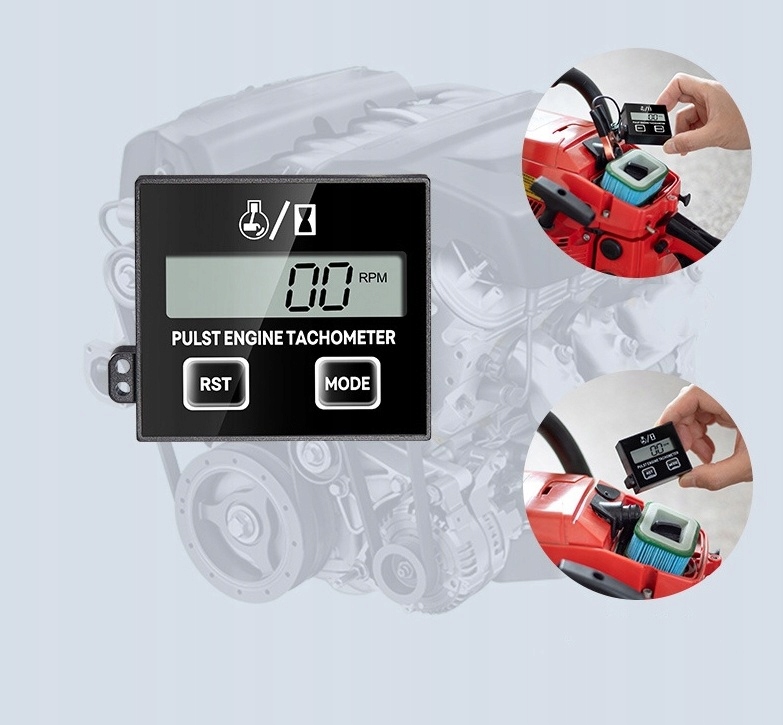 - 【Легкая работа】 Индукционный тахометр показывает скорость тока на работающем двигателе и общее количество часов работы с выключением двигателя. Он также имеет программируемый символ обслуживания, который напоминает пользователю, когда пришло время заменить масло или выполнять другие действия по техническому обслуживанию, что делает его полезным и удобным инструментом для обслуживания двигателя.