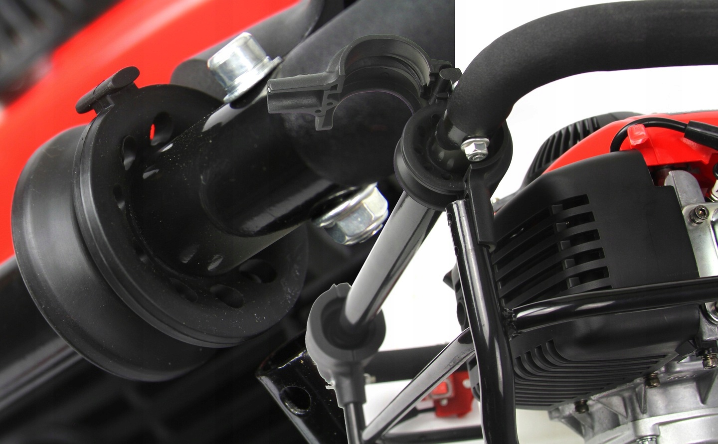 4-тактный двигатель с большим топливным баком, амортизирующей рамой, рукояткой управления с регулировкой газа и кнопка включения/выключения выключения