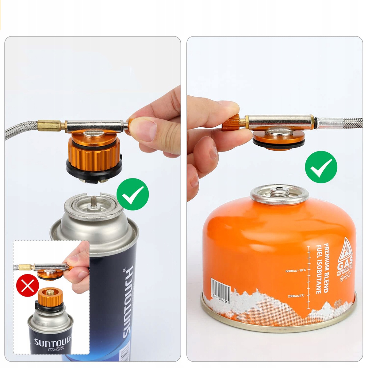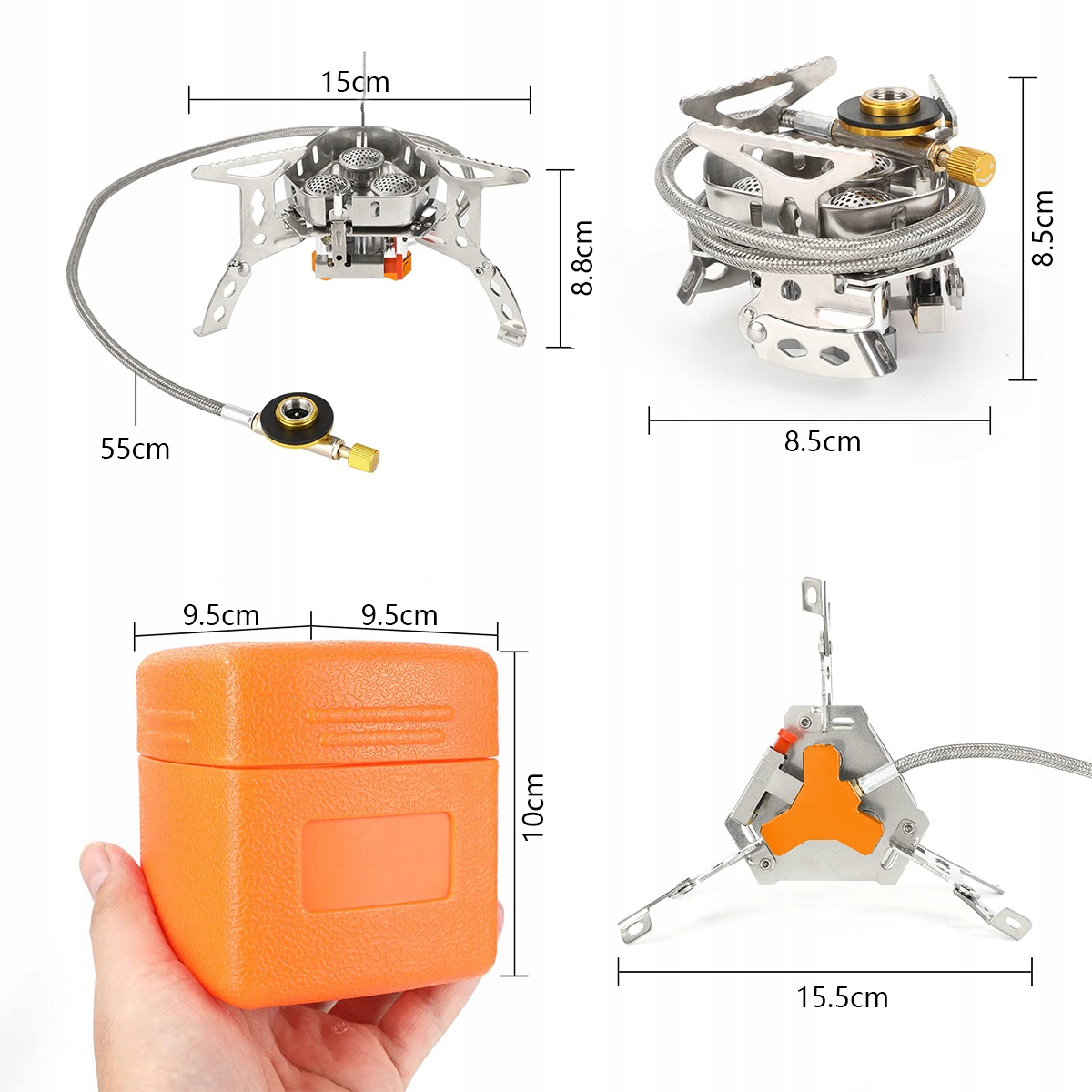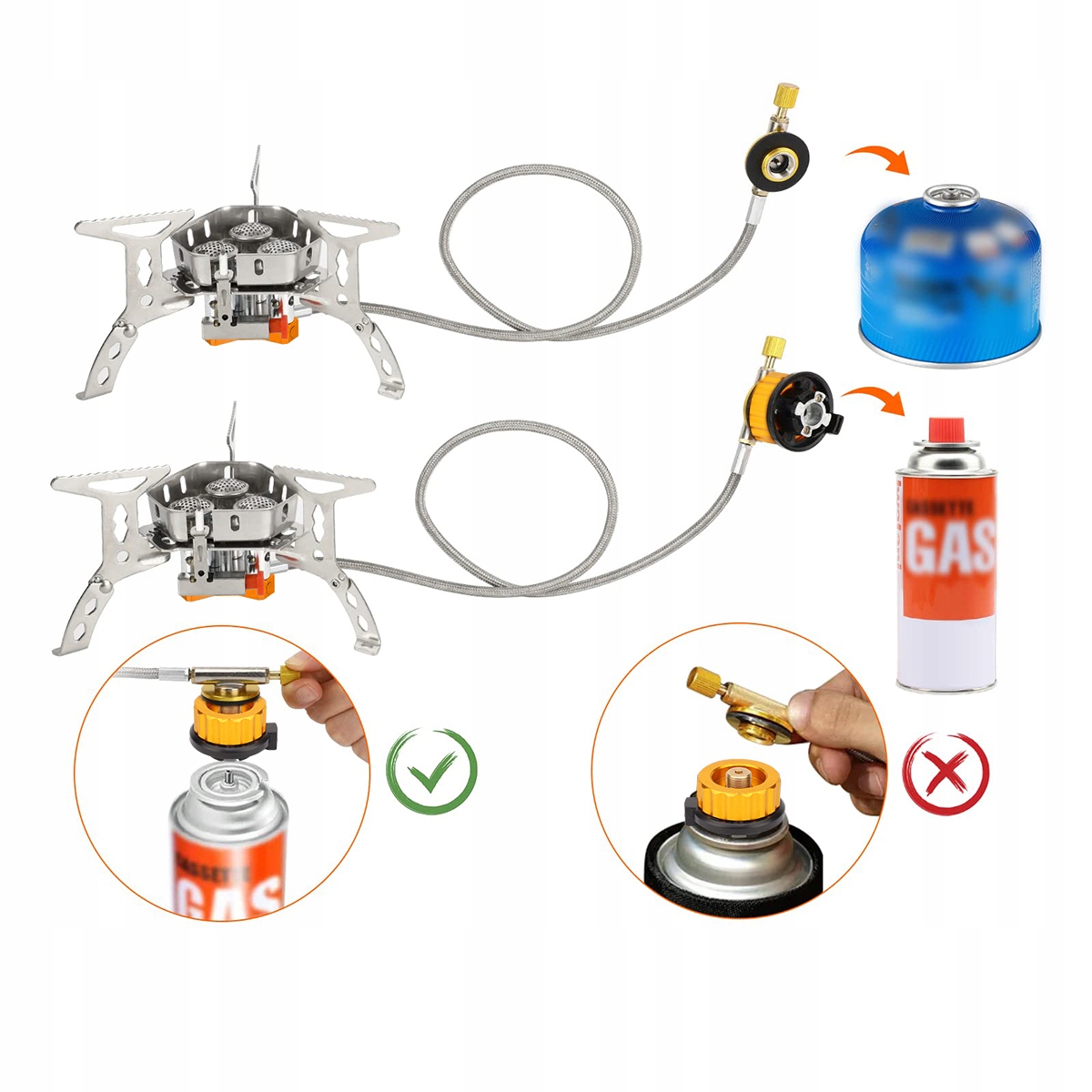 Наша походная печь оснащена разъемами двух типов, совместимыми с любым топливным баком со смесью монобутана/бутана-пропана с резьбой 7/16 (EN 417). Вы можете выбрать подходящий бензобак в соответствии с вашими потребностями (не входит в комплект). Кроме того, шланг походной печи длиннее на 60 см, что длиннее, чем у других печей со шлангом всего 30 см. Расстояние между плитой и газовым баллоном больше, что делает ее более безопасной в использовании.