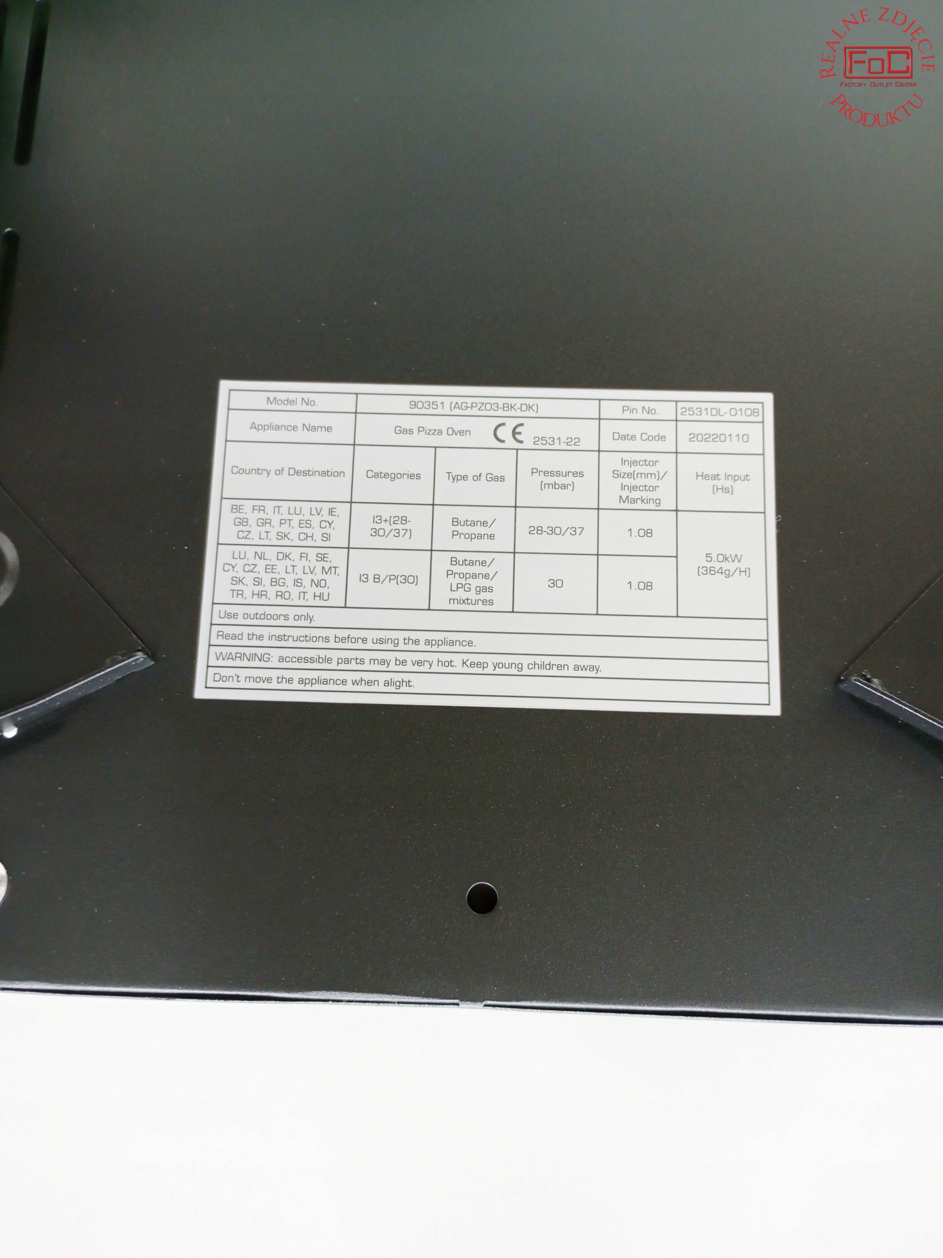 Практичный дизайн: наша печь для пиццы отличается компактными размерами 53 x 53 x 29 см, с эффективной мощностью 5,0 кВт при давлении газа 30 мбар, оснащен практичным электроподжигом, питаемым от батарейки типа АА (батарейка в комплект не входит).