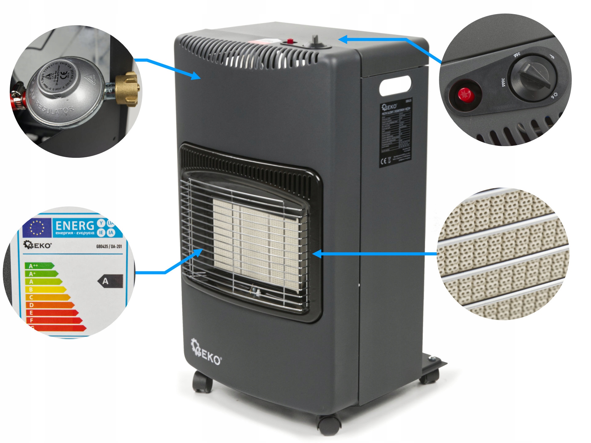 Этот компактный газовый обогреватель оснащен тремя уровнями мощности (1500, 2800 и 4200 Вт). Благодаря регулировке мощности печь идеально подходит для многих больших поверхностей.