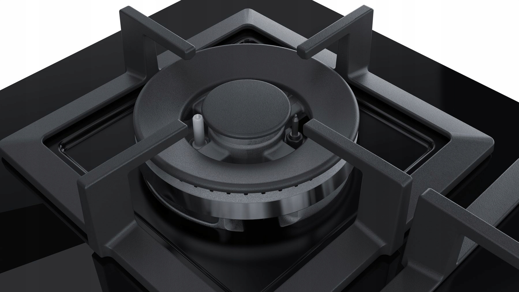 Газовая варочная панель из закаленного стекла с функцией FlameSelect: прямой путь к идеальным результатам с девятью точно заданными уровнями мощности.