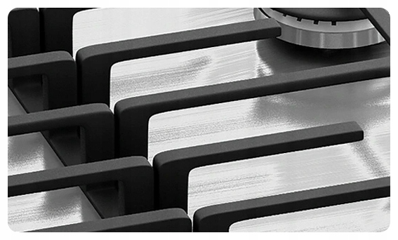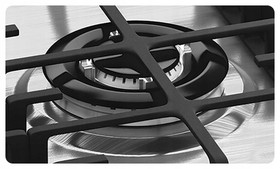 Система точного регулирования пламени сочетает в себе преимущества приготовления пищи на газе с удобством, как в индукционной плите. 9 Уровни мощности, помеченные на ручках, облегчат регулировку размера пламени. Вы будете получать точно такой же эффект каждый раз, и вы не потеряете время, чтобы установить горелку.
