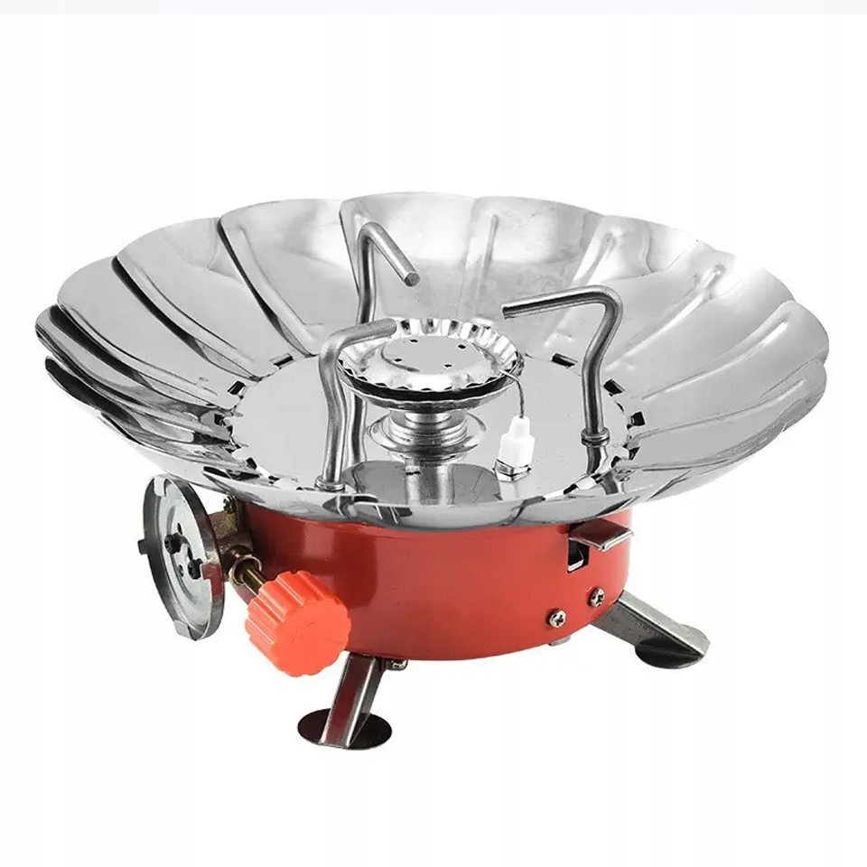 Специально сконструированная, расширенная, металлическая крышка вокруг горелки В виде вентиляторов защитит пламя от погашения его от порыва ветра, кроме того, это предотвратит разбрызгивание приготовленной еды на столешнике. Приготовление пищи даже в самой ветреной погоде больше не вызовет проблемы.
