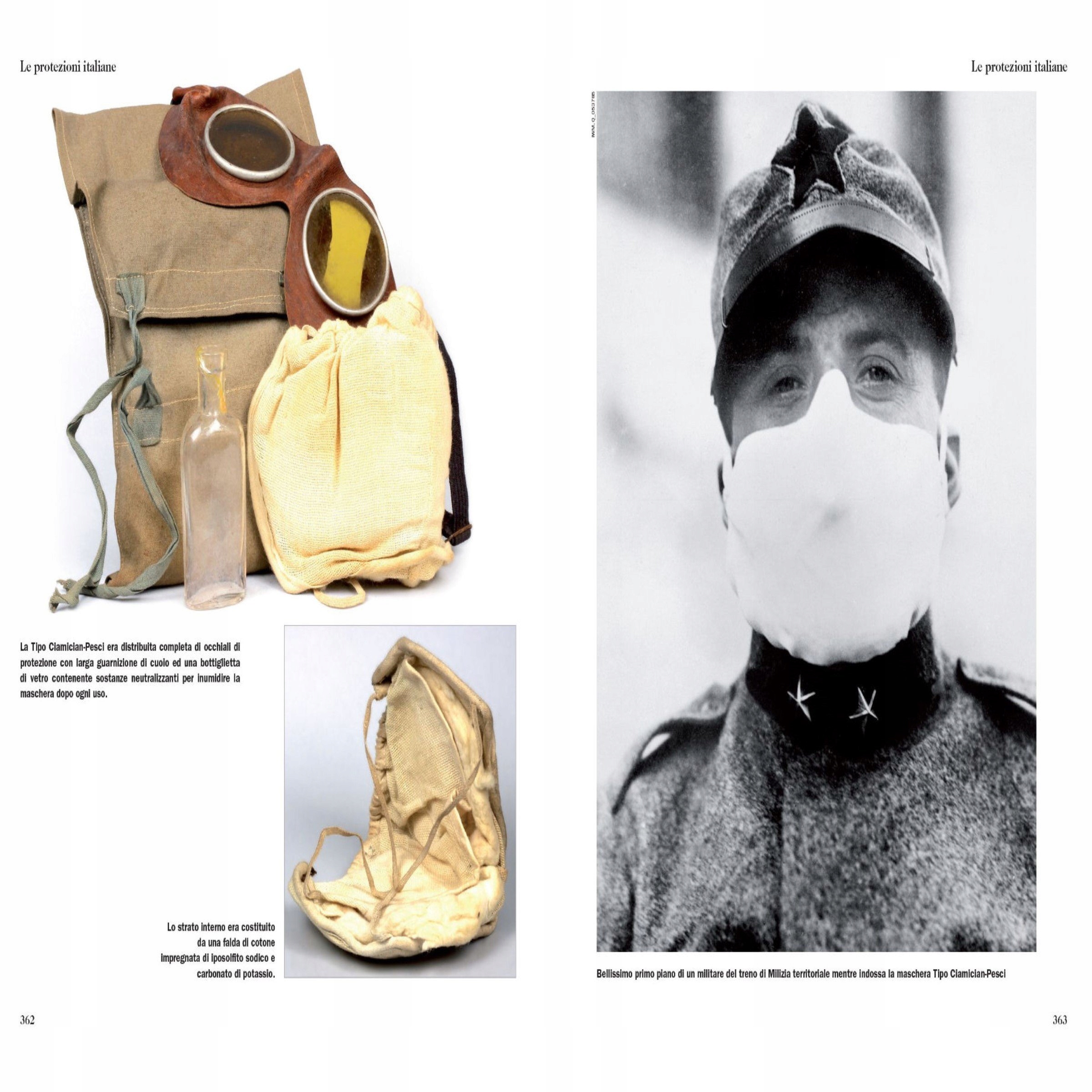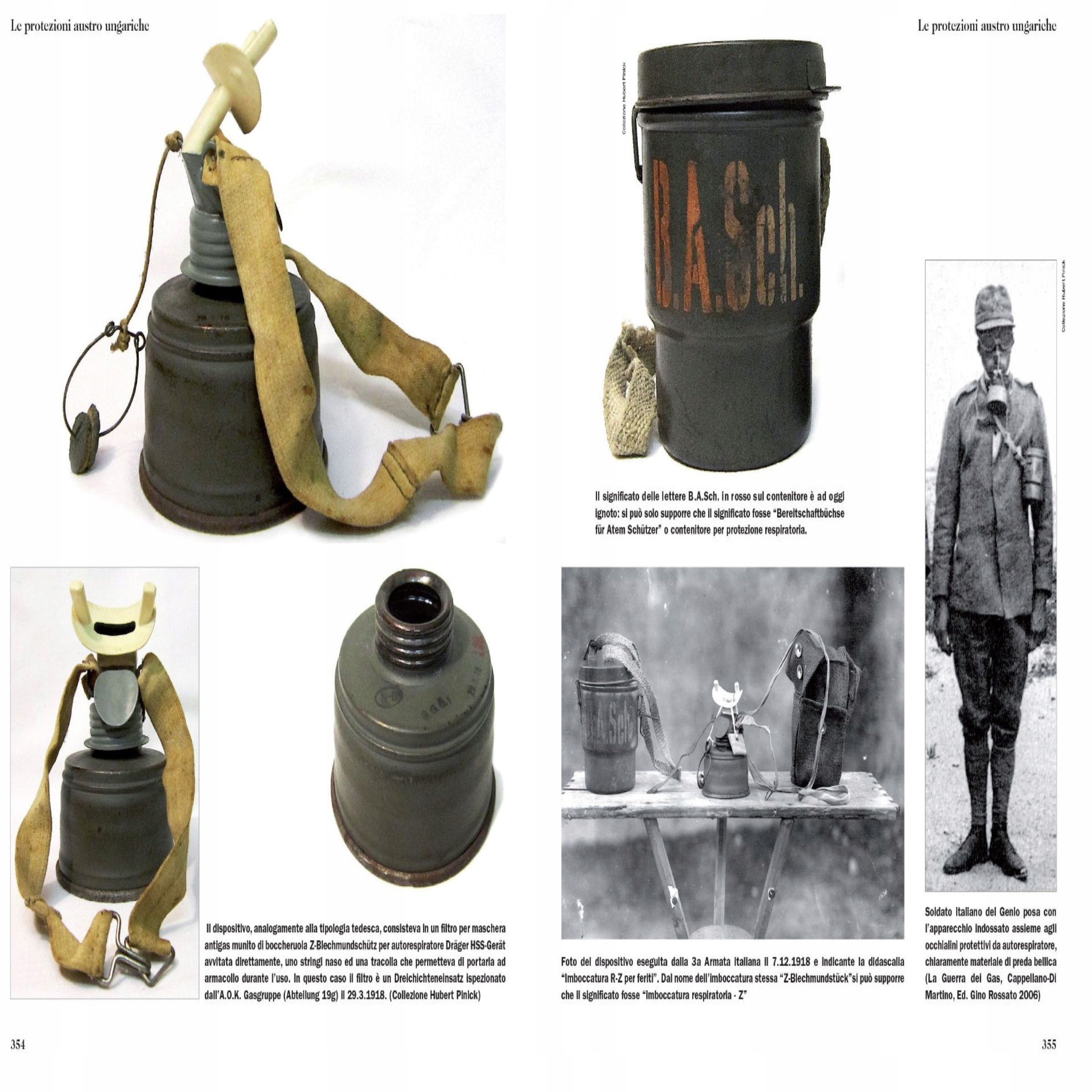 Публикация, описывающая историю создания и применения первых противогазовых средств имперскими армиями Германии и Австро-Венгрии, а также армией Королевства Италия в годы Первой мировой войны. В книге 512 страниц информации о средствах газозащиты, от первых примитивных устройств до профессиональных противогазов. Книга также содержит исторический обзор исследований отравляющих газов в трех странах, сведения об отраслях, которые участвовали в их производстве, и главу о важнейших видах отравляющих газов.