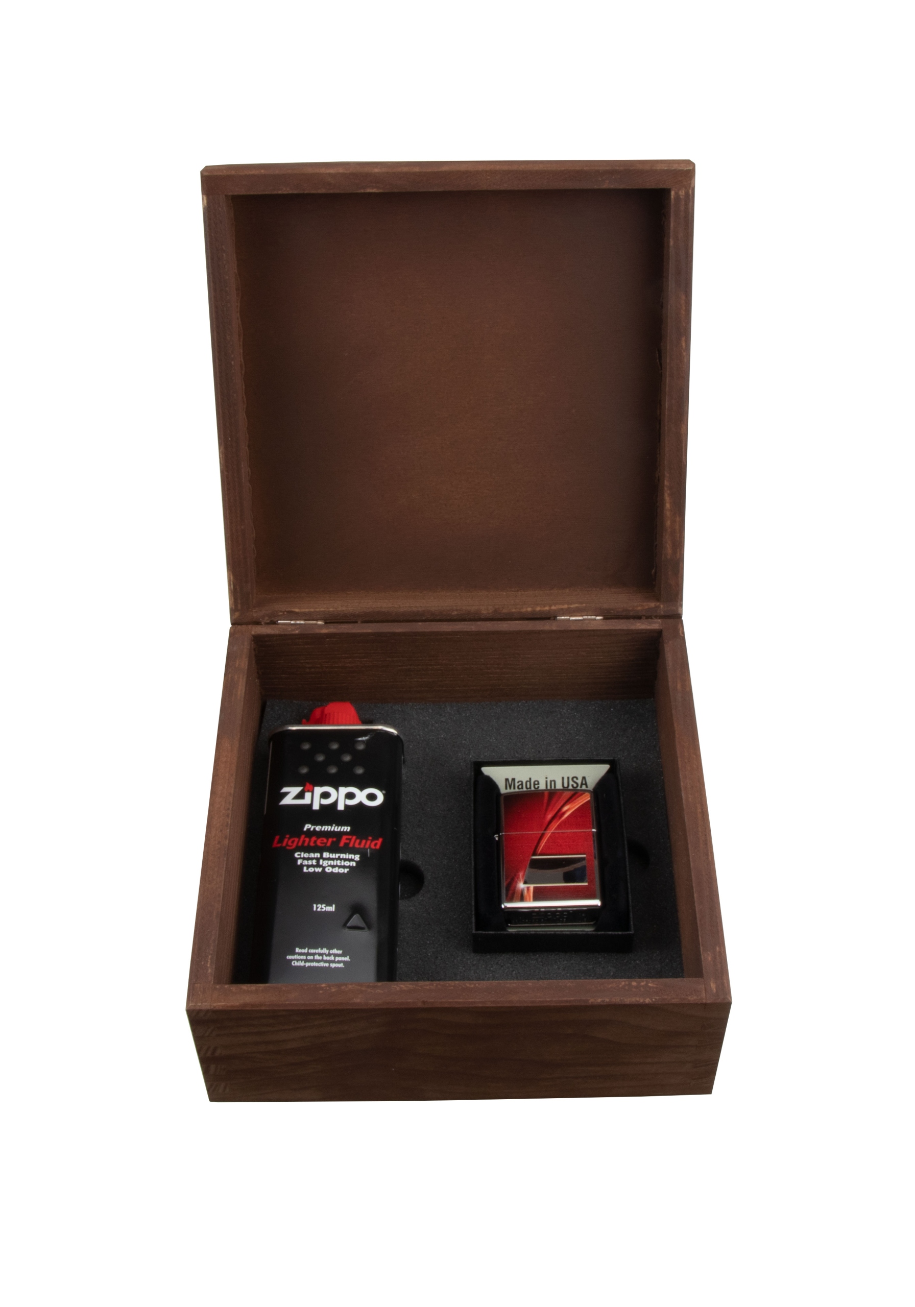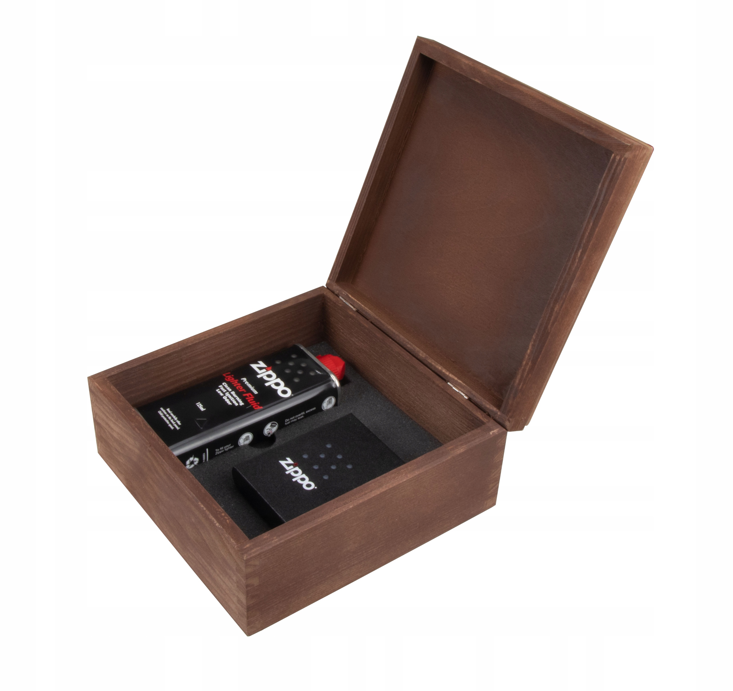 Эксклюзивная зажигалка ZIPPO упакована в деревянную коричневую коробку с эффектной ГРАВИРОВКОЙ + БЕСПЛАТНЫЙ БЕНЗИН