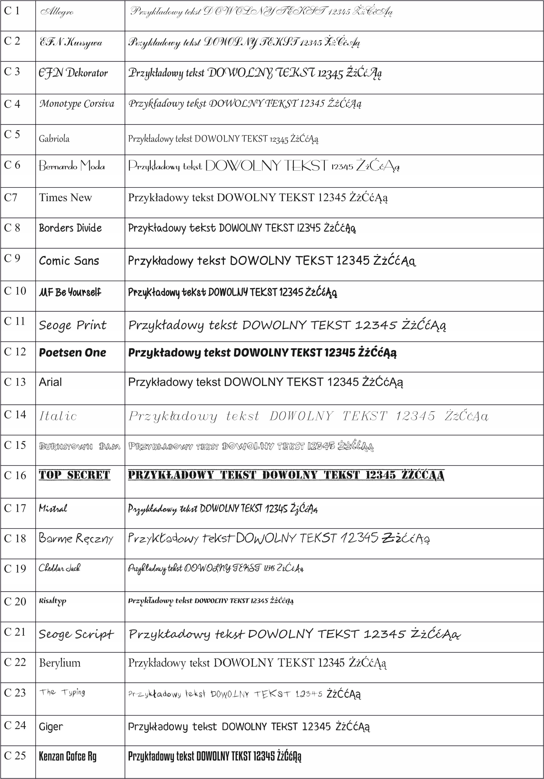 - Номер шрифта, например: C4. Если эта информация отсутствует, шрифт будет выбран случайным образом.