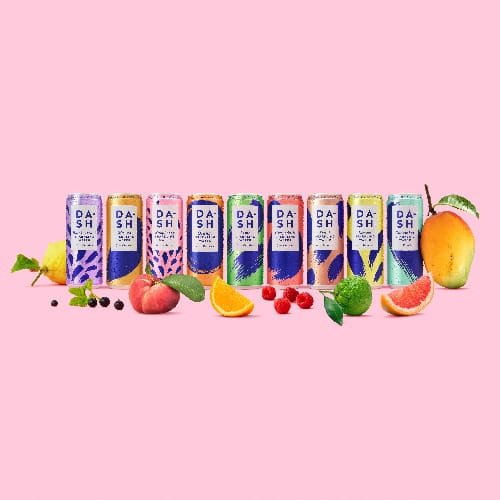 Газированная вода Dash Water 330мл ароматизированная в банке упакована в упаковки по 12 штук.