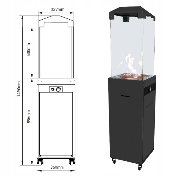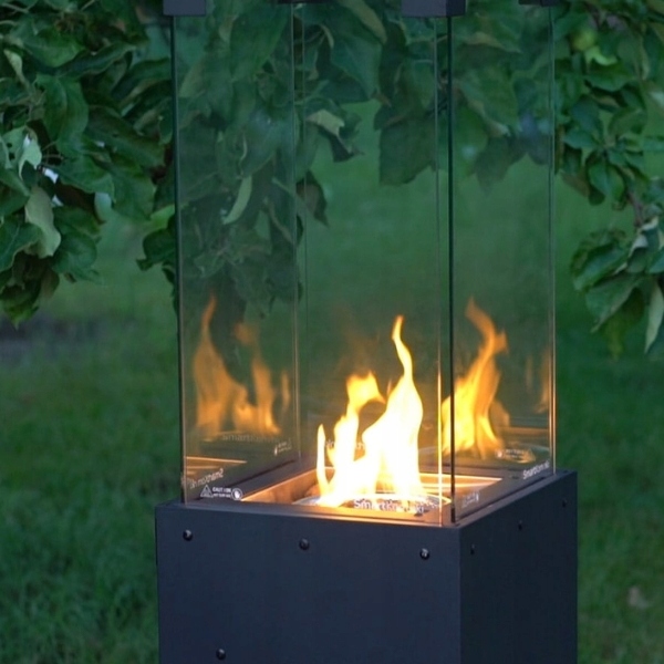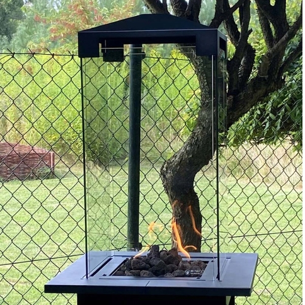 Его современный дизайн подходит к различным типам декора, а использование баллонов для сжиженного нефтяного газа позволяет использовать настоящий огонь без дыма и пепла до 35 часов (при использовании баллона весом 11 кг). Этот уличный камин изготовлен из высококачественных материалов, в том числе нержавеющей стали с черным порошковым покрытием и закаленного стекла, устойчивого к высоким температурам.