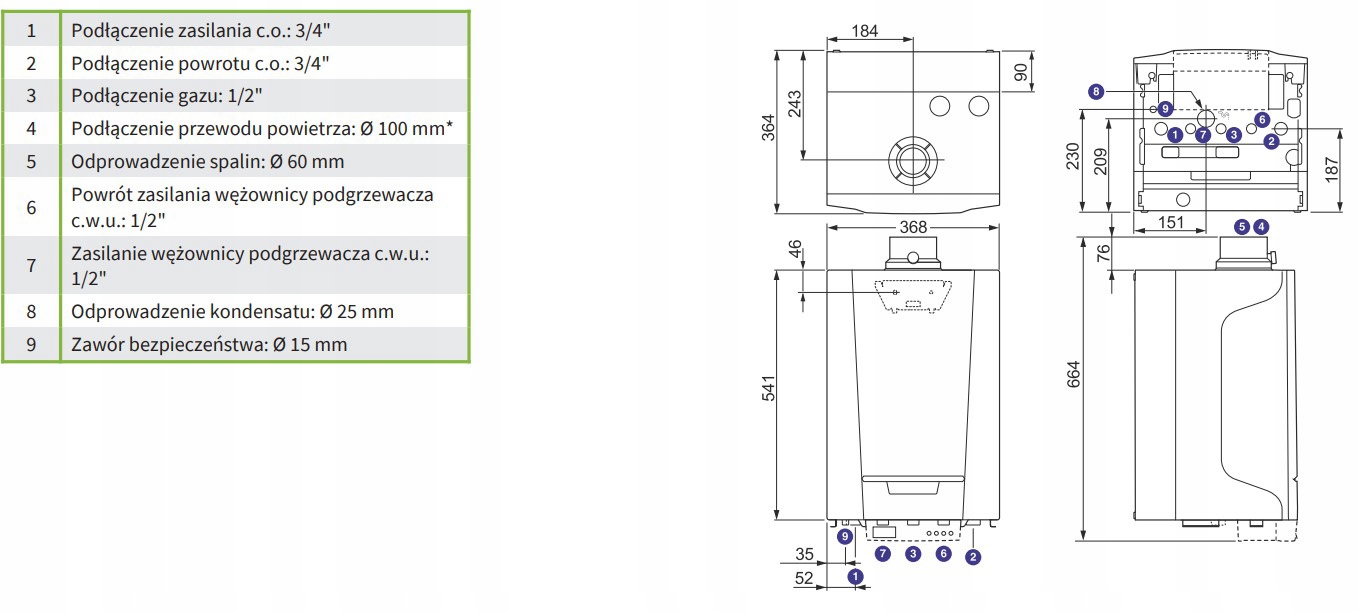 - Модульный воздух/газ, содержащий газовый горелка, модулирующая от 24 до 100% мощности с обратной связью для работы с дренажными системами выхлопного газа, с газовым модулем, добавка воздушного всасывания