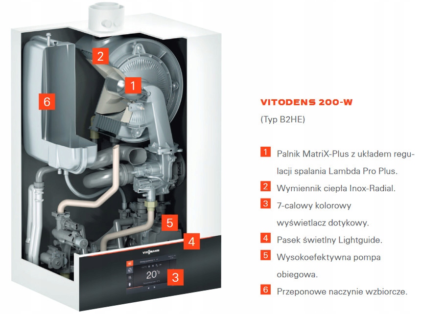 - Конденсационный газовый котел VITODENS 200 Вт типа B2HE мощностью 1,9-19 кВт с погодной автоматикой Е3 и встроенным WiFi-модулем для управления котлом через мобильные устройства li>