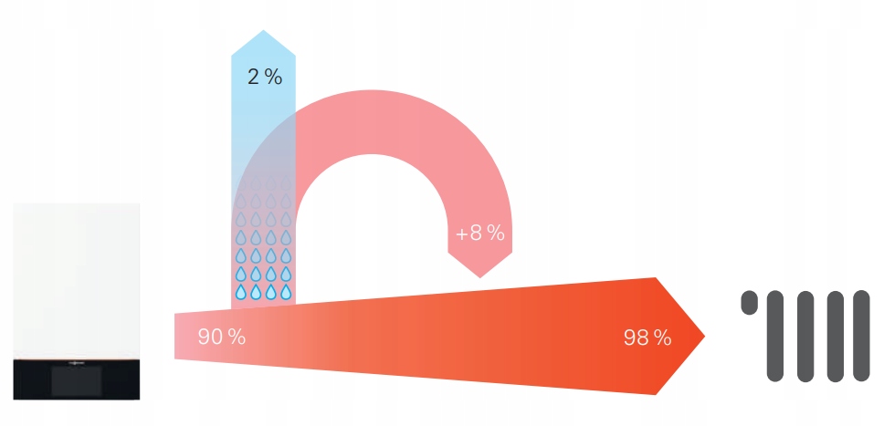 Газовые отопительные котлы Viessmann позволяют преобразовать в тепло до 98 процентов энергии используемого топлива. Используя явление конденсации, они обеспечивают систему отопления дополнительной тепловой энергией, выделяющейся при конденсации водяного пара, содержащегося в выхлопных газах. В результате повышается эффективность установки, снижаются затраты на отопление и снижается воздействие на окружающую среду