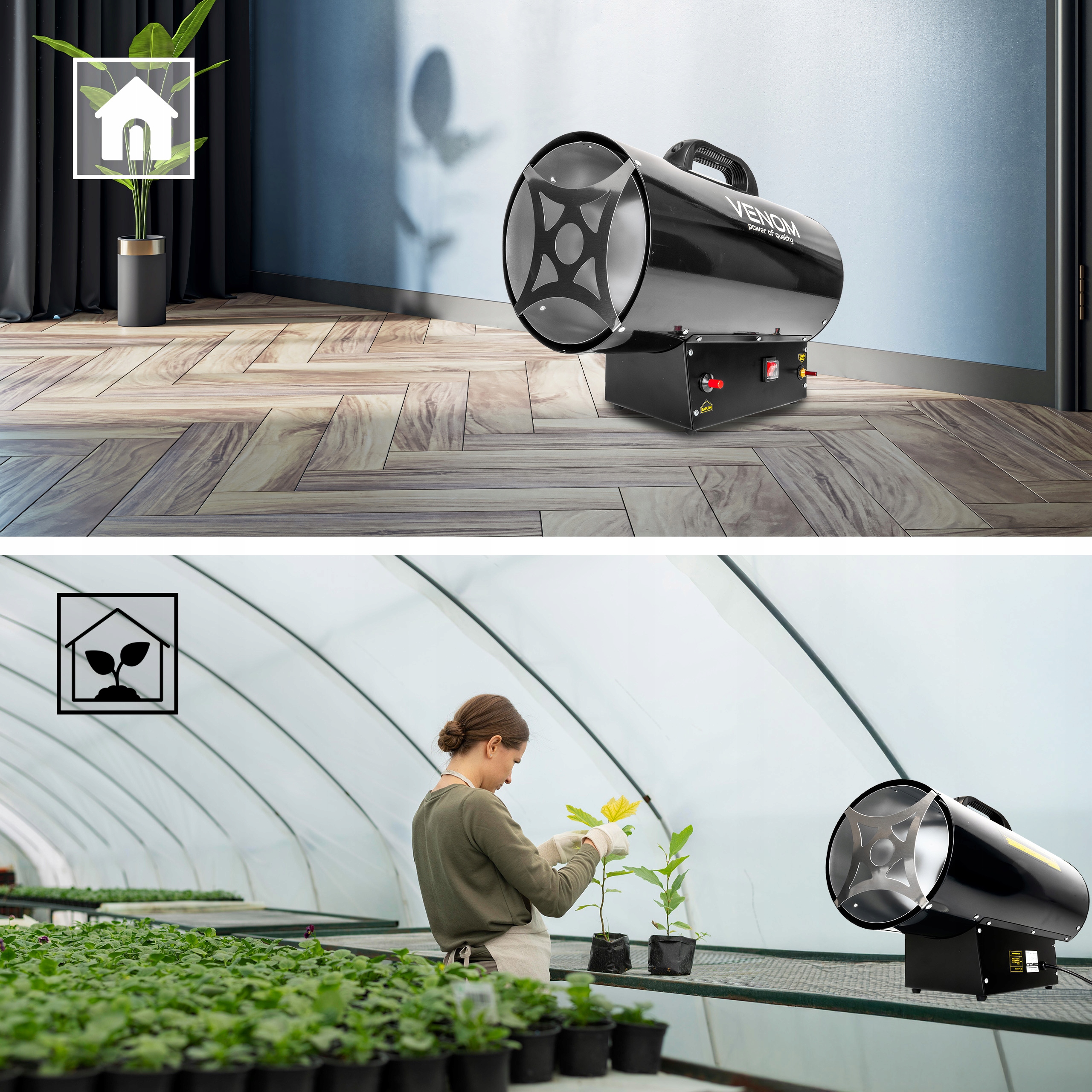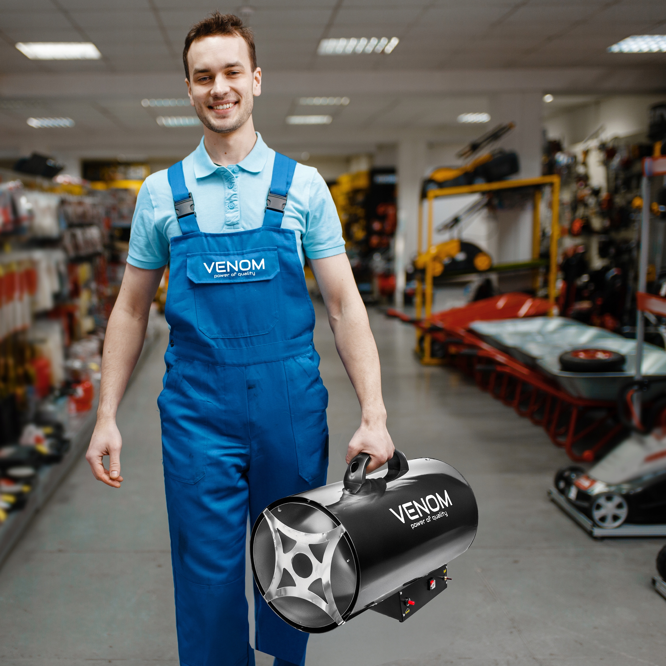 ✅ VENOM PowerHeat 50kW™ — газовый обогреватель впечатляющей мощностью 50 000 Вт, повышающий температуру за несколько минут даже в очень больших помещениях.