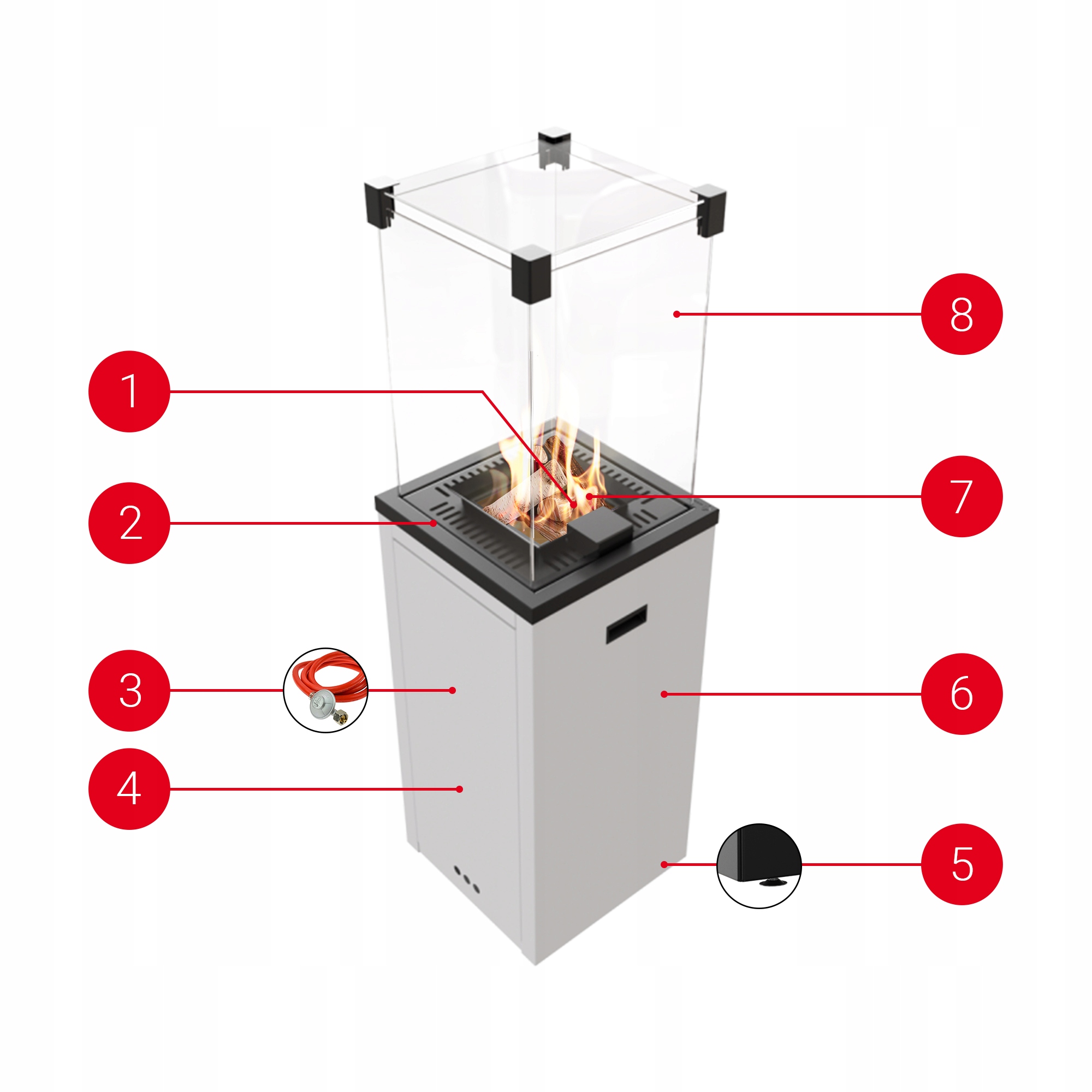 PATIO SLIM питается от сжиженного газа из баллона, спрятанного в корпусе. Пламя заключено в стеклянную камеру, которая защищает нас от прямого контакта с огнем. Это позволяет любоваться игрой пламени под полным контролем.В устройстве использовано закаленное стекло толщиной 4 мм.Нижняя часть корпуса устройства выполнена из стали, покрытой порошковой краской. Благодаря этому PATIO SLIM устойчив к повреждениям. Верхняя конструкция каменки гарантирует защиту горящего огня от ветра. Кроме того, он равномерно направляет образующееся в нем тепло на четыре стороны.