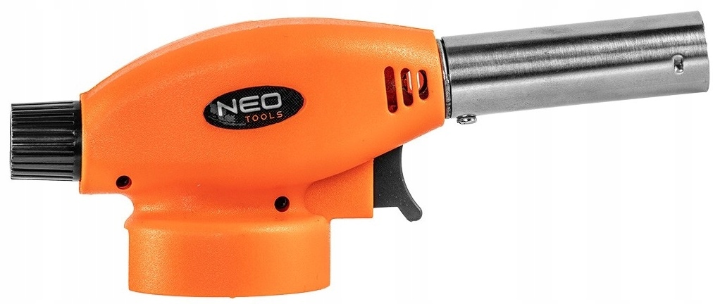 Газовая паяльная горелка на картриджи 227 г (тип EN 417), пьезоподжиг, для работы в вертикальном положении (+/-80 градусов), рабочая температура 1000°С, мощность 1,11 кВт, средний расход газа 80 г/ч, корпус пластик, кнопка мгновенного розжига.