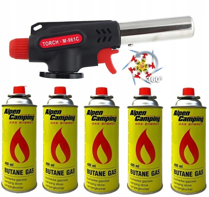 Газовая горелка 360° с пьезорозжигом + 5 газовых баллончиков Alpen Camping