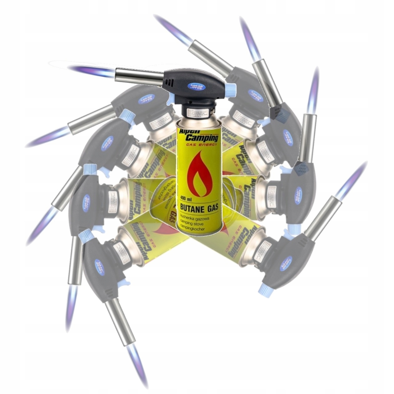Газовая горелка с пьезорозжигом + 4 газовых баллончика Alpen Camping