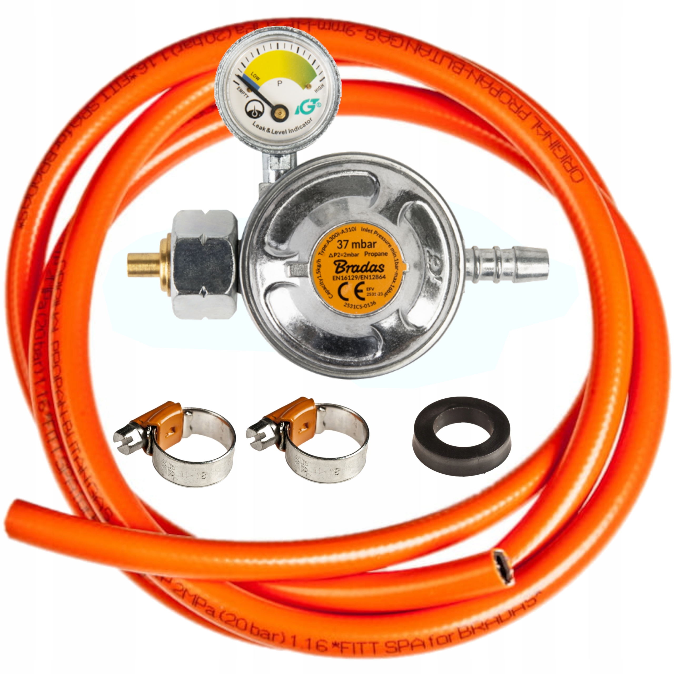 Газовый редуктор 37мбар, 1,5кг/ч, с предохранительным клапаном и давлением манометр (позволяющий провести тщательную опрессовку герметичности всей установки) - подробное описание внизу страницы.