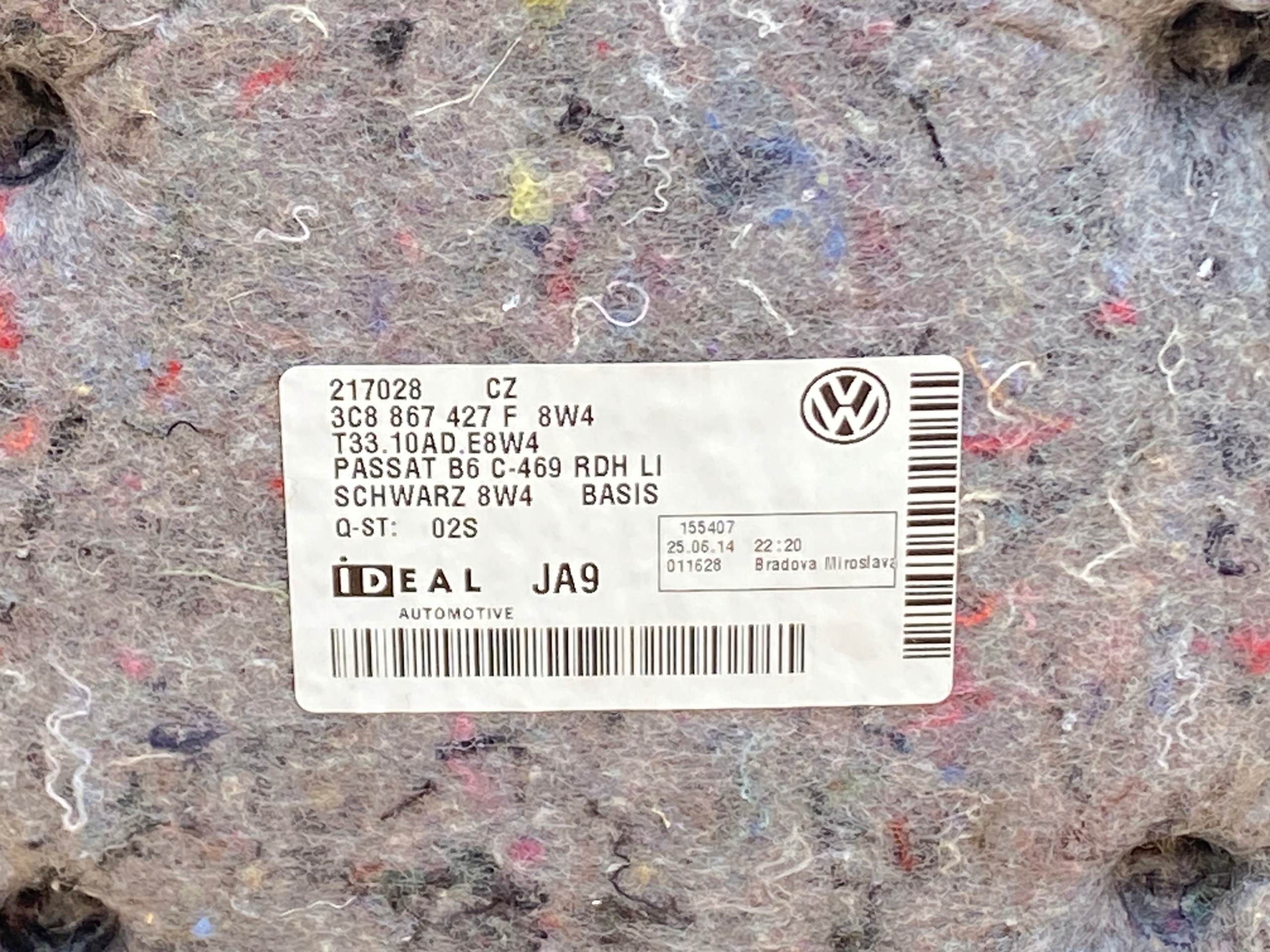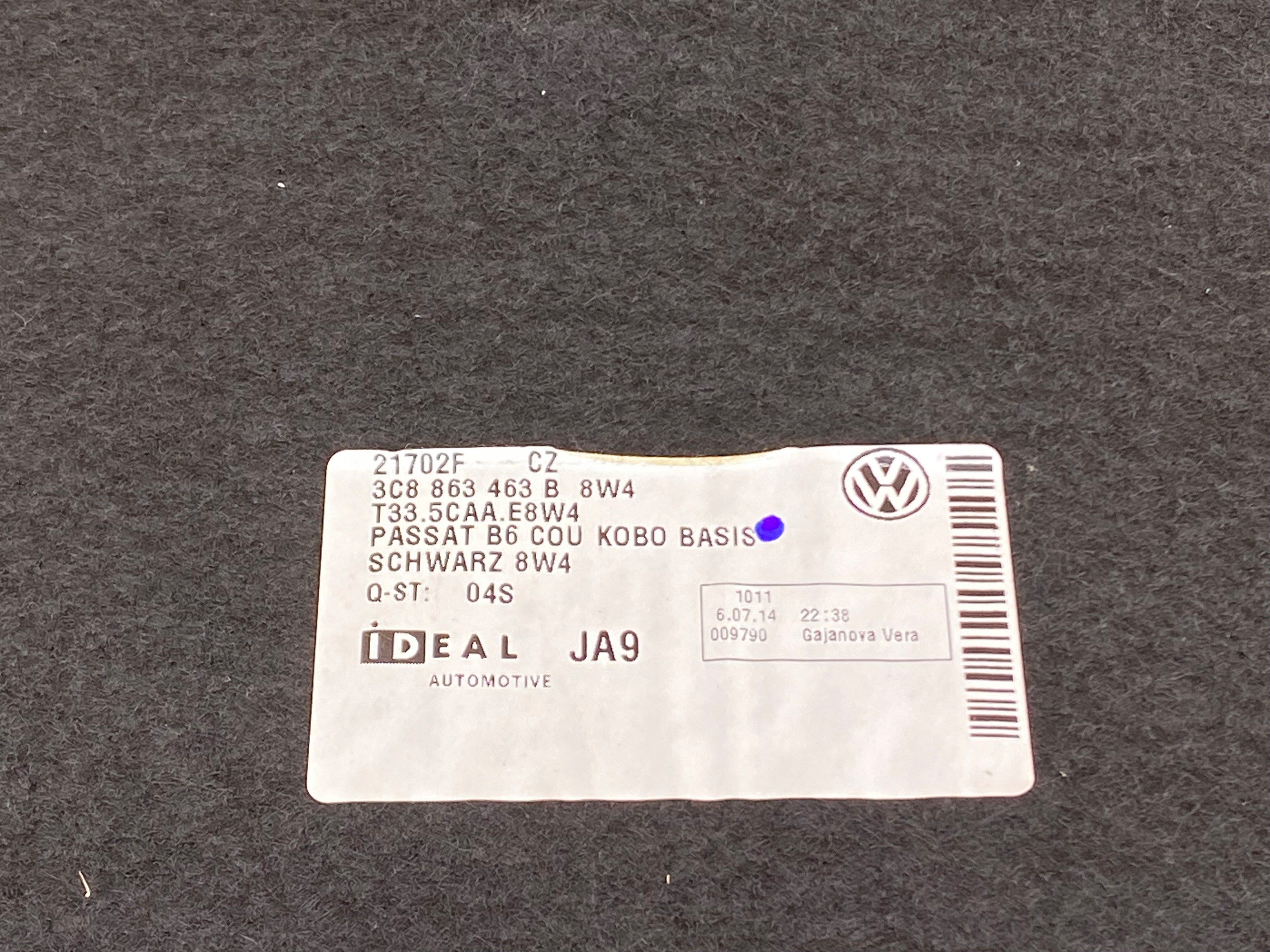 Обивка багажника, элементы с фотографий для VW Passat CC с заводским номером: