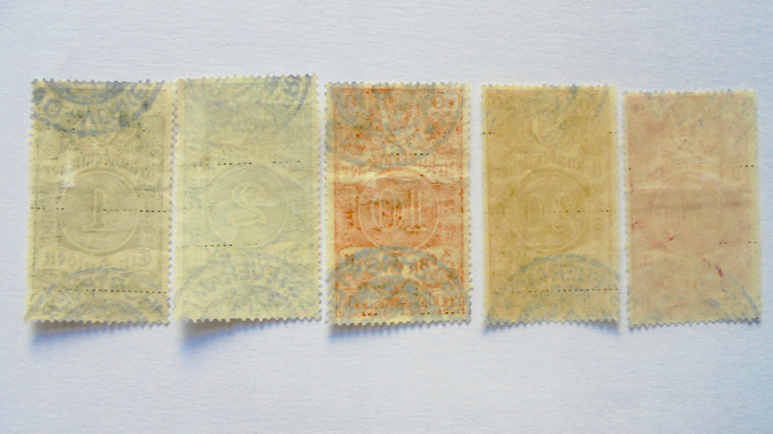 Пять официальных гашенных марок Гданьска URKUNDENSTELLE, хорошее состояние.