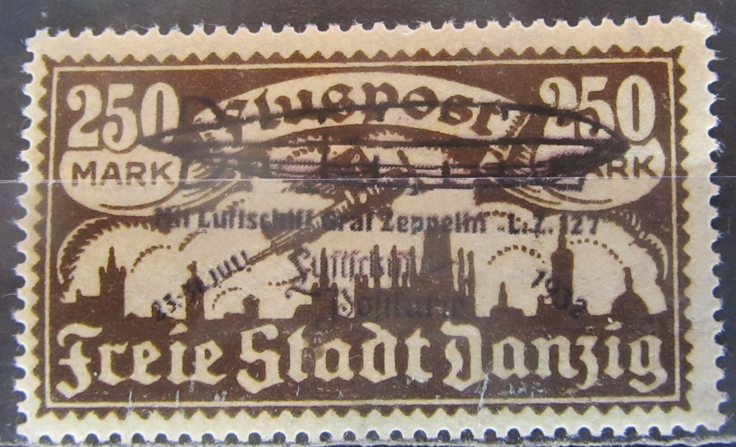 Старая марка Гданьска с надпечаткой «Цеппелин» (18 июня).