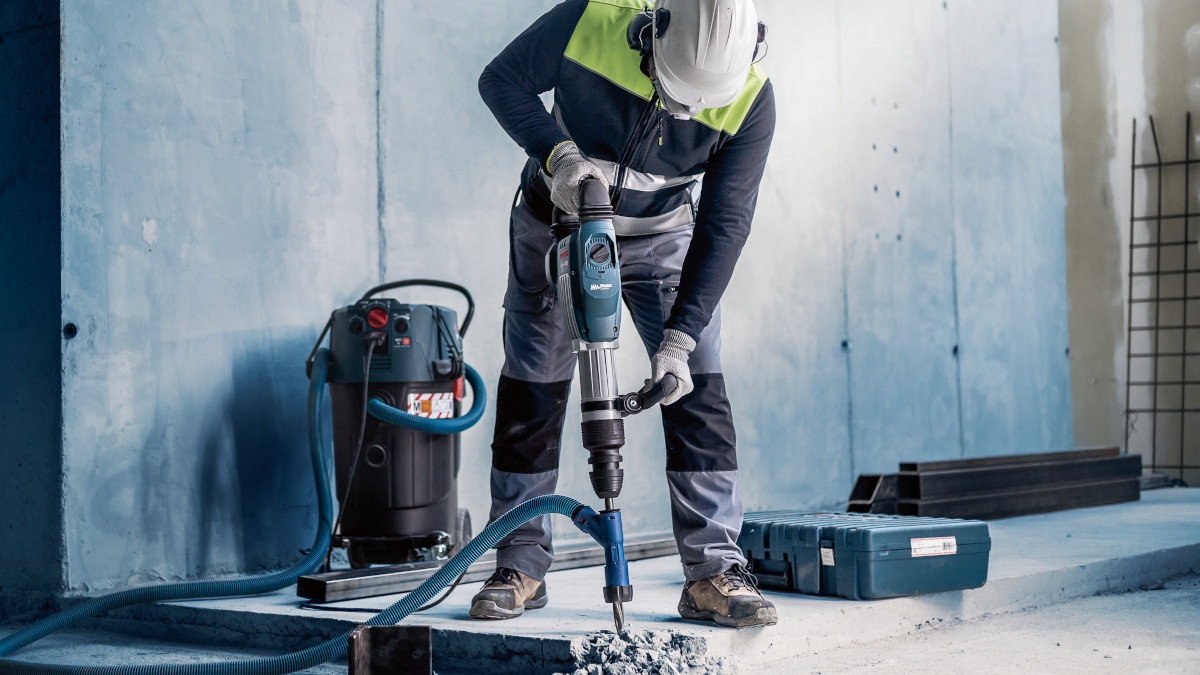 Набор GDE Clean Max от BOSCH отличается большой простотой эксплуатации – долото, установленное в молотке, проходит через переходной фланец. Когда вы начинаете ковку, пыль всасывается адаптером пылесоса.