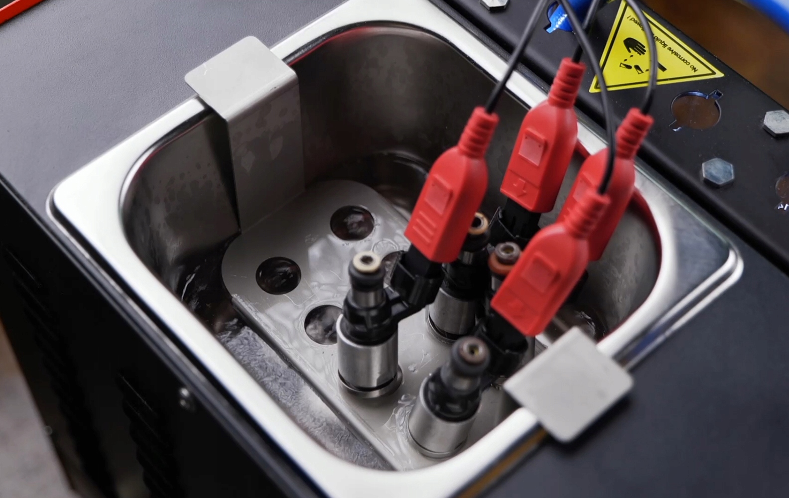 Чистящая жидкость используется для очистки от отложений (например, нагара) на топливных форсунках и обычно обладает высокой коррозионной активностью и огнеопасностью. Для получения наилучшего результата тестирования рекомендуется использовать профессиональную жидкость для ультразвуковой чистки инжекторов. Если его нет в наличии, вместо чистящей жидкости рекомендуется использовать медицинский спирт с содержанием спирта более 75 %, но учтите, что эффект может быть недостаточно хорошим