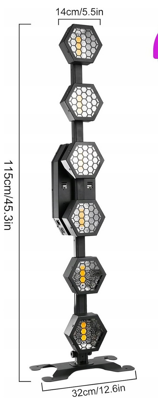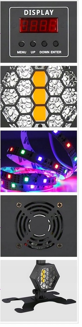 Красочный эффект COB + RGB: Сценическая лампа для диджеев состоит из 6 частей светодиодов теплого белого початка с емкостью 50 Вт и 63 небольших встроенных светодиодов 5050 SMD RGB 3 в 1. Он имеет световые эффекты, такие как приветственный экран, комбинация монохром.