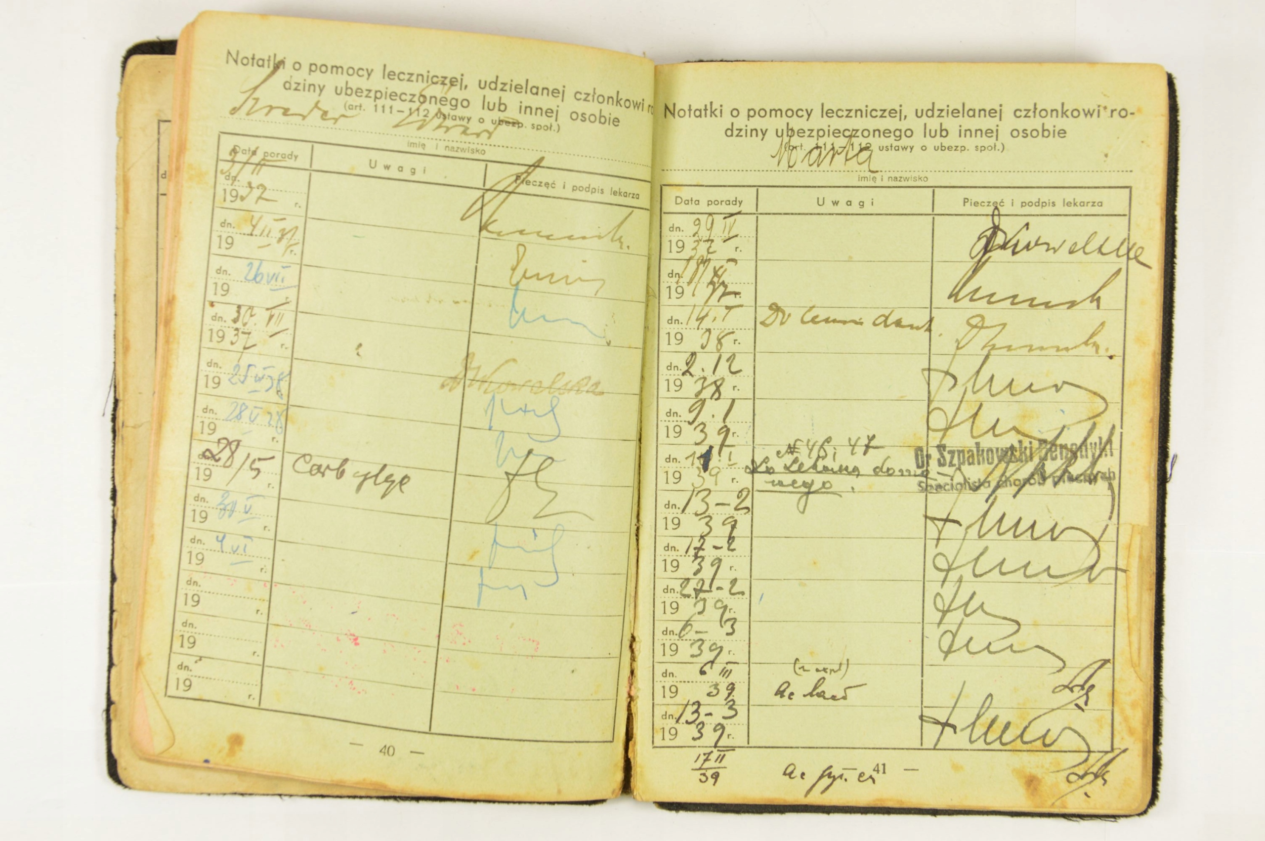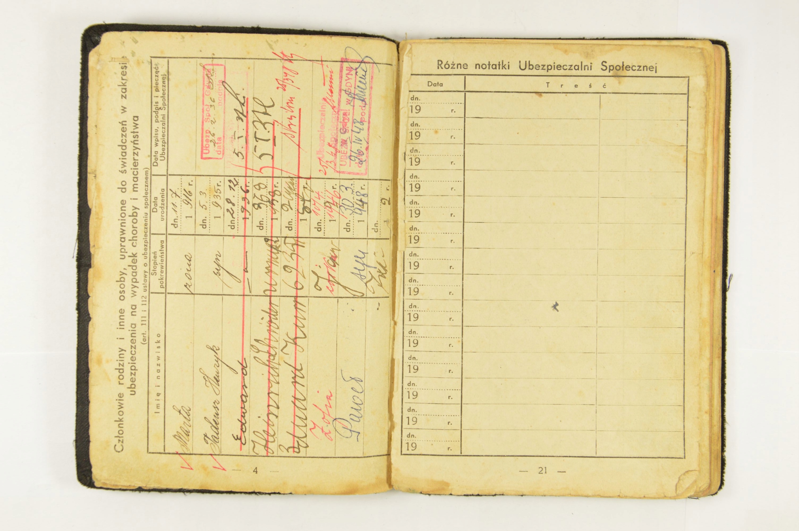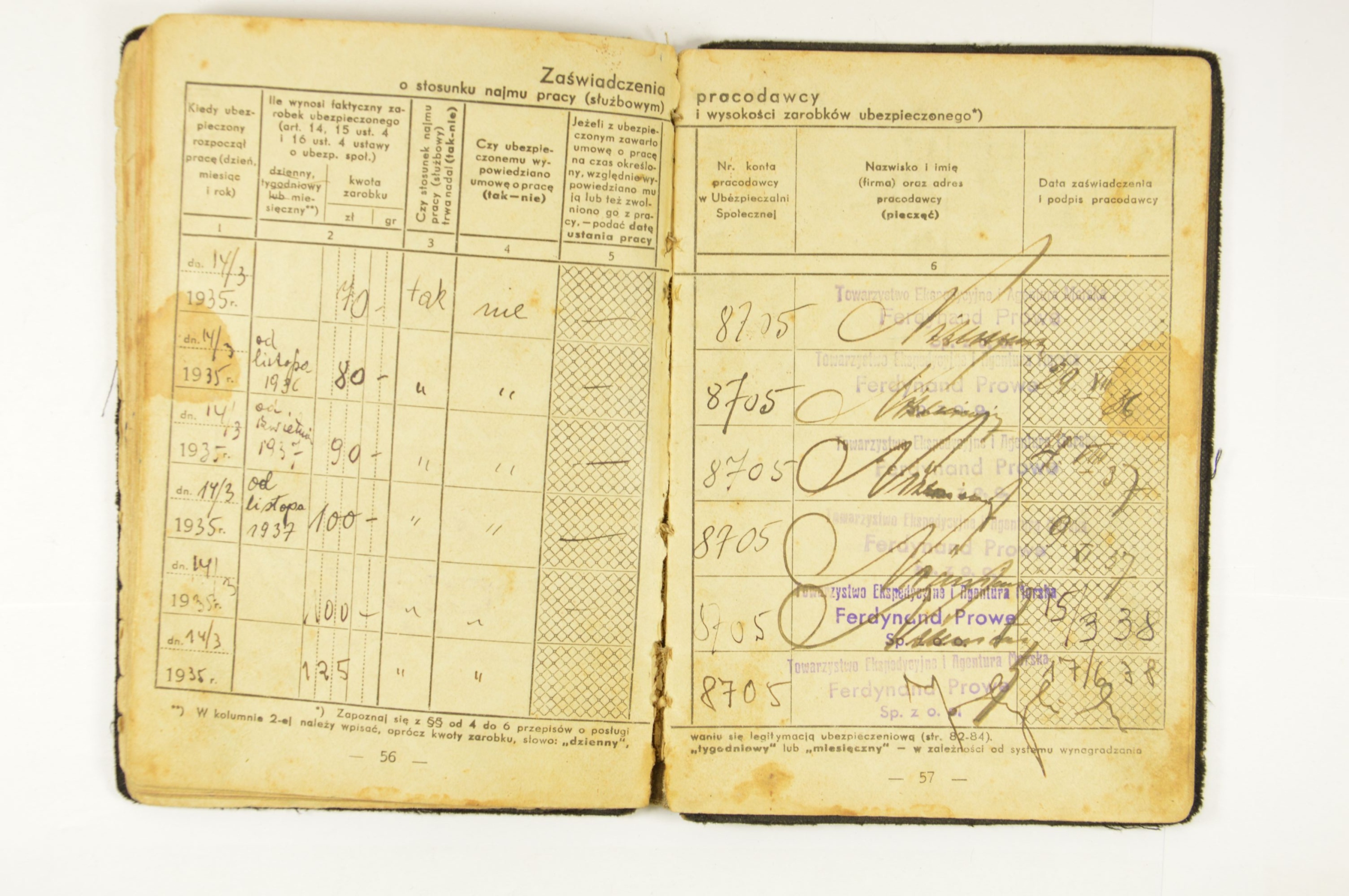GDYNIA LEGITYMACJA UBEZPIECZENIOWA 1936 r. DUŻO WPISÓW ZOBACZ!