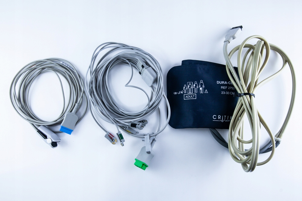 - также включает в себя кабель и манжету для измерения, датчик насыщения, кабель ЭКГ (аксессуары могут отличаться от таковых на снимках)