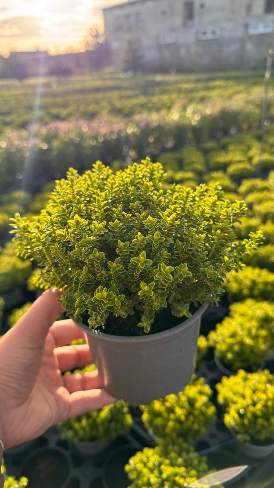 Гебе — вечнозеленый густой декоративный кустарник, состоящий преимущественно из листьев. Он имеет компактную правильную форму и маленькие эллиптические листья интенсивного зеленого цвета. В отличие от цветущих сортов, его самым большим преимуществом является нарядная, пышная зелень круглый год. Идеально подходит в качестве низкой живой изгороди, бордюра клумбы или контейнерного растения. Придает садам и террасам аккуратный и эстетичный вид в любое время года.