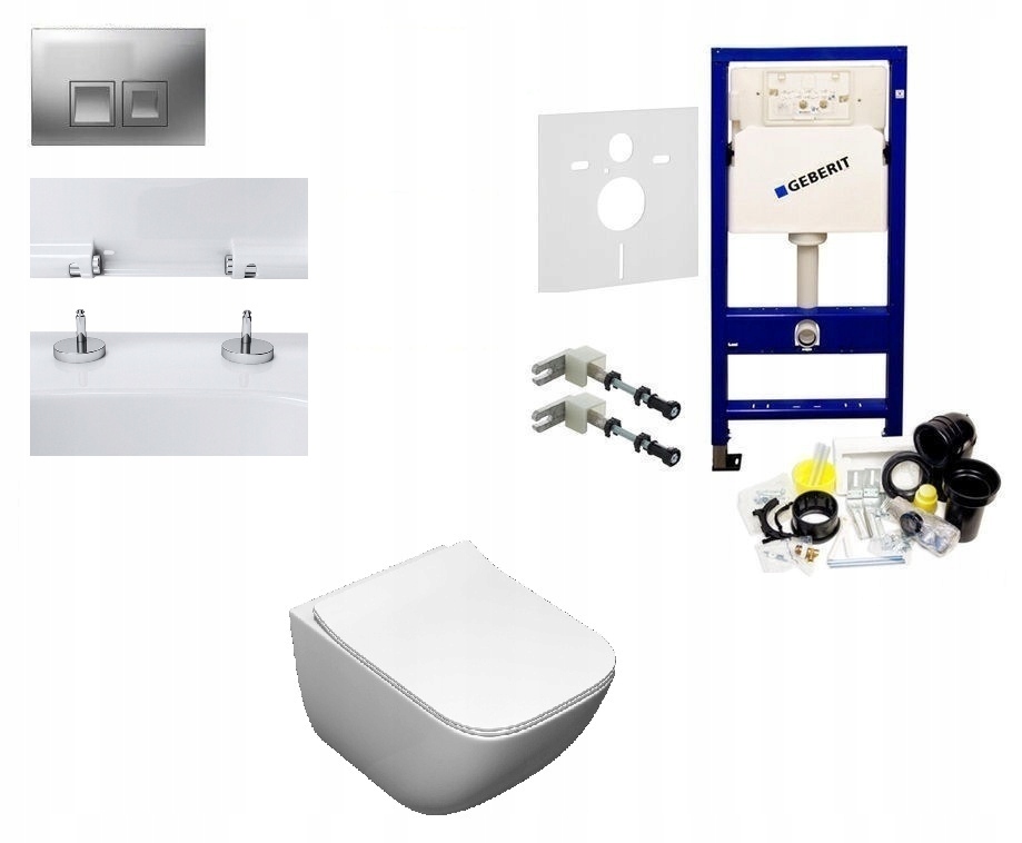 Рамка Geberit UP100 + акустическая прокладка + проставочные кронштейны + кнопка + унитаз IVETTA RIMLESS + сиденье SLIM DUROPLAST