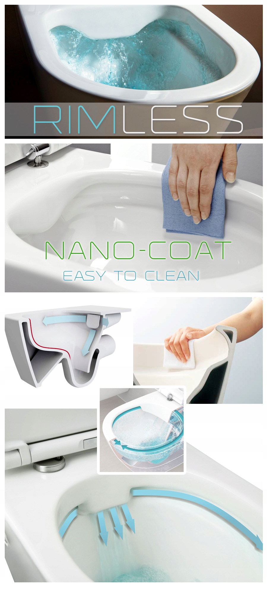 Унитаз из сантехнической керамики цвета снежного кома. Покрытие NANO на чашках наушников и система RIMLESS без оправы позволяют невероятно легко содержать их в чистоте. Медленно-низкая доска оставит в далеком воспоминании невыносимый шум, нарушающий тишину вашего дома.
