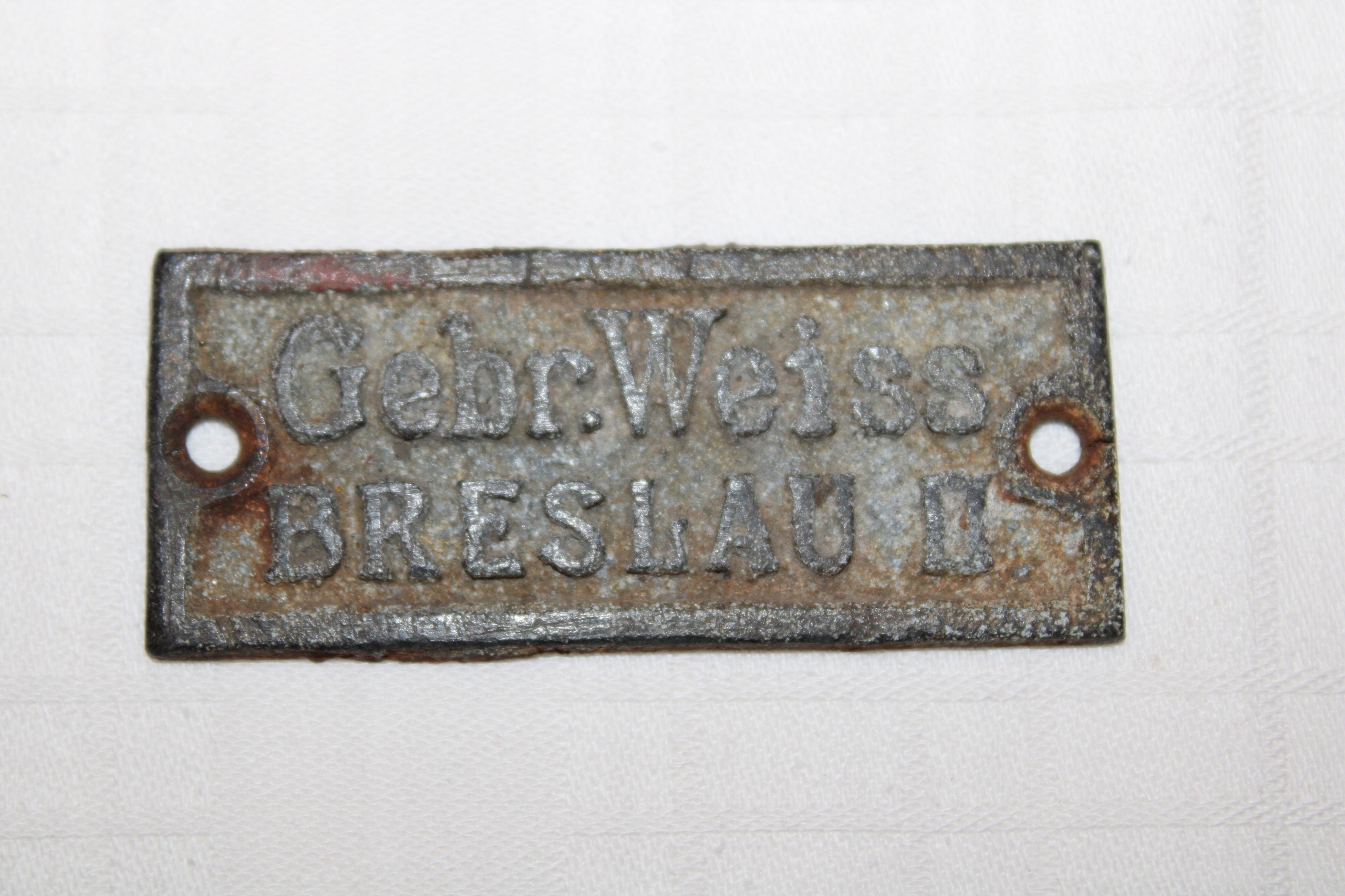 Старая мемориальная доска из Вроцлава, размеры 2,6 см х 6,2 см.