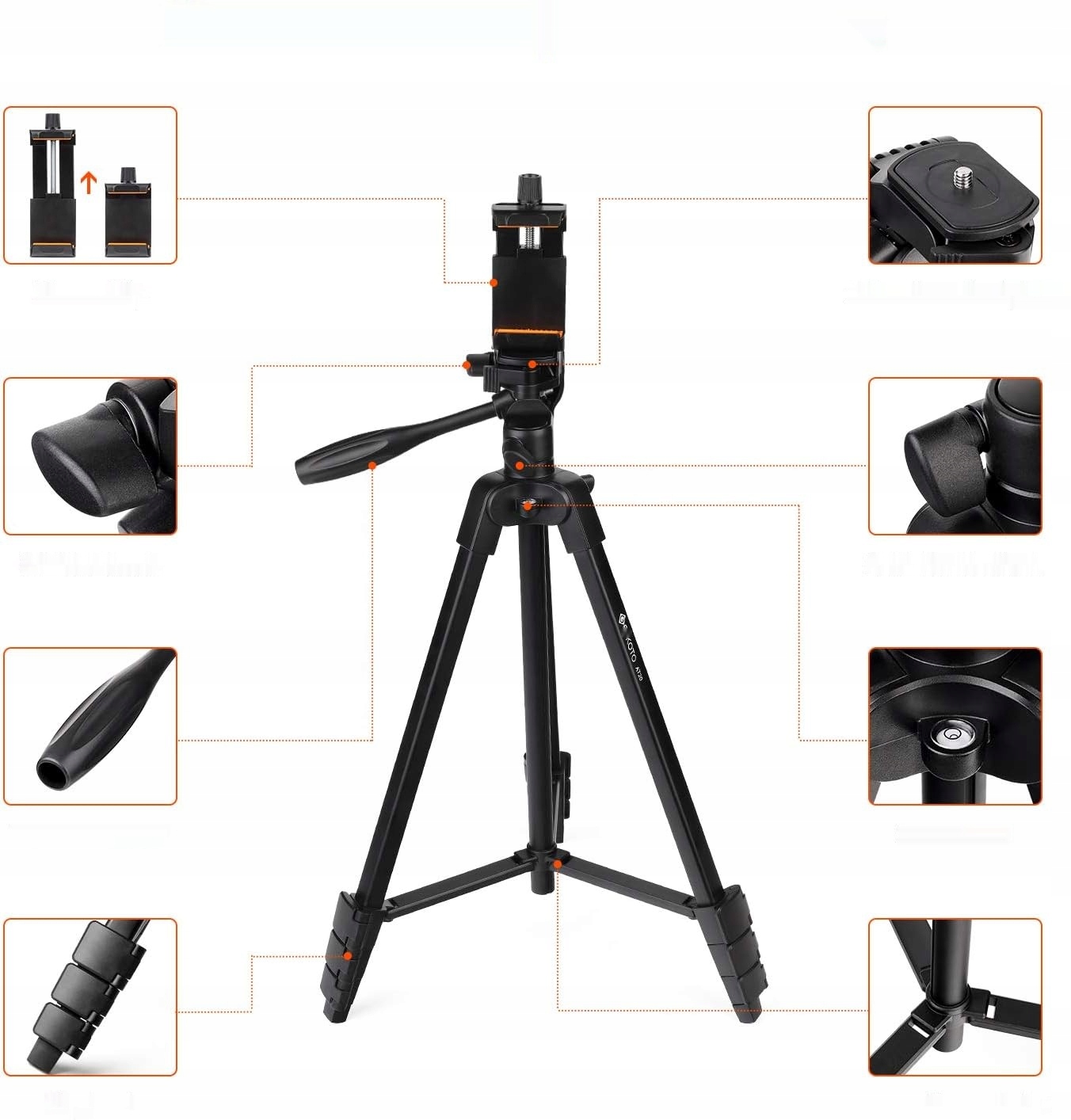 ✅ Легкий штатив: ножки штатива можно регулировать на трех уровнях. Максимальная высота может достигать 54 дюймов (три пряжки ремня должны быть полностью повернуты, чтобы зафиксировать ноги). Легкая алюминиевая конструкция весит 650 грамм. Максимальная нагрузка на горизонтальный пол составляет 3 кг, что делает его одновременно устойчивым и легким. Штатив можно взять с собой в самолет.