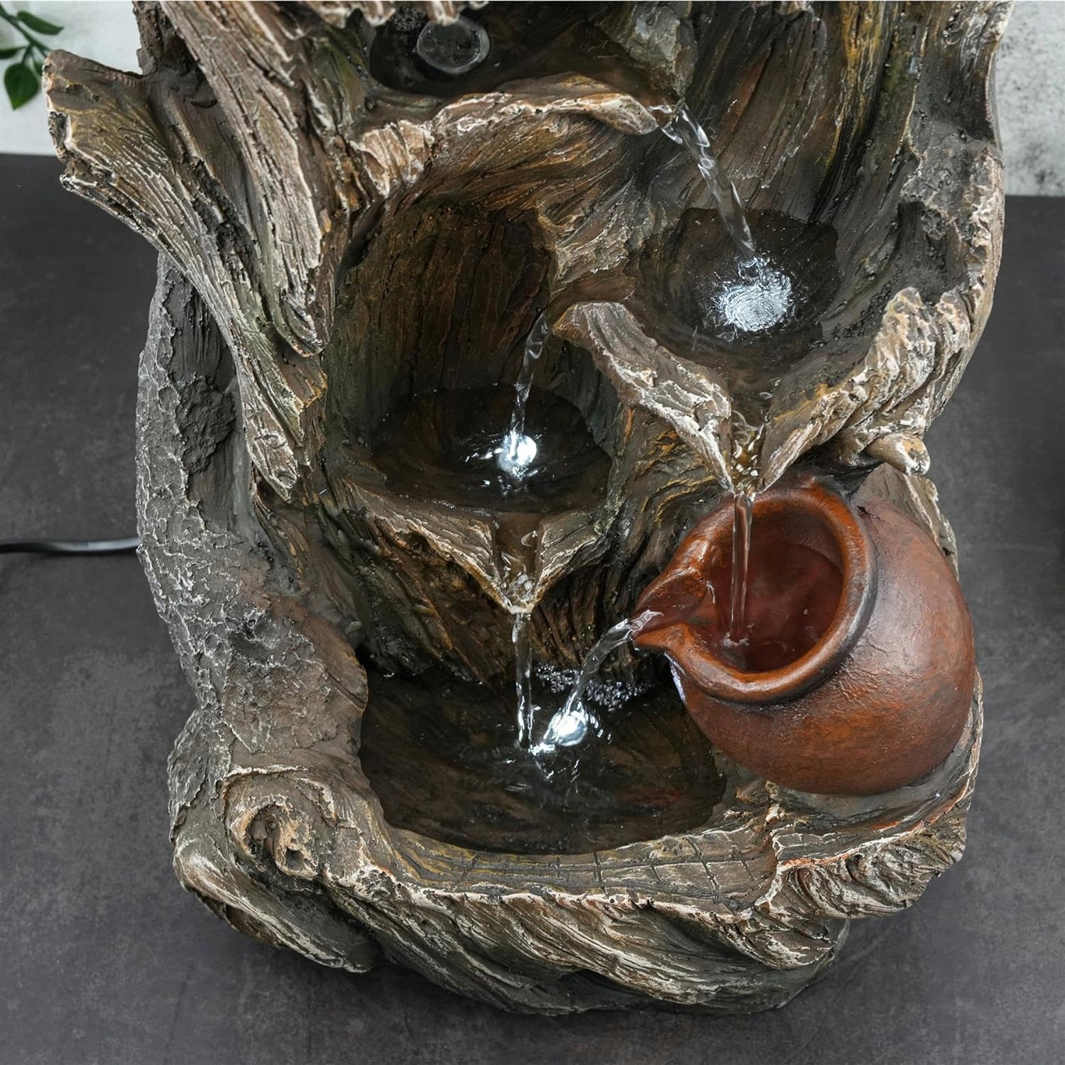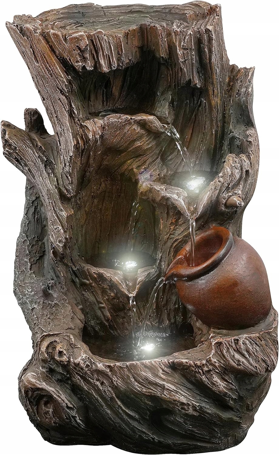 Geezy Garden Water Feature светодиодного фонтана в помещении/открытом каскадном отдельно стоящем полирезиновом садовом садовом огне и уменьшение воды (фонтан бревна деревьев)