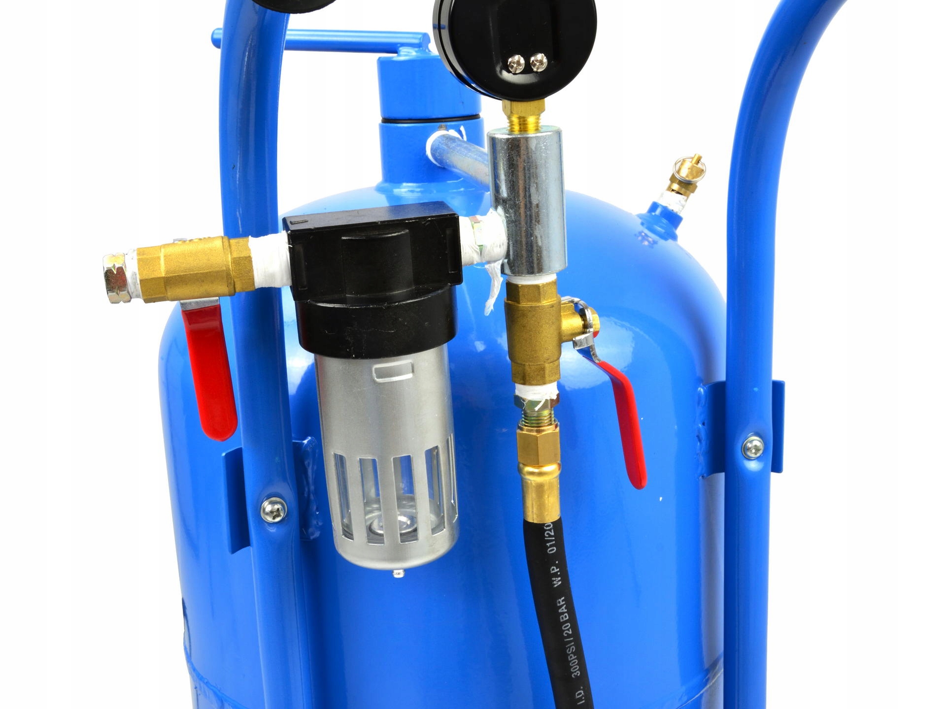 Передвижной напорный пескоструйный аппарат (сифон) емкостью 38 литров. Он идеально подходит для ремонта, технического обслуживания, кузовных и механических работ, а также на производственных предприятиях. Комплектуется насадками и пескоструйным пистолетом, запорным краном, манометром, пескоструйным шлангом, воронкой для заполнения бака и защитной маской с окошком из оргстекла.