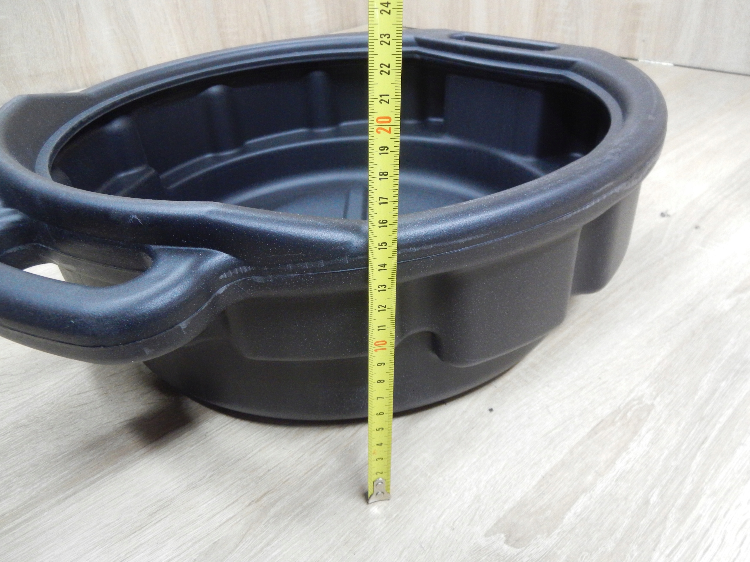 Полезен при замене масла или охлаждающей жидкости в автомобиле. Небольшая высота чаши позволяет легко задвигать ее под автомобиль.